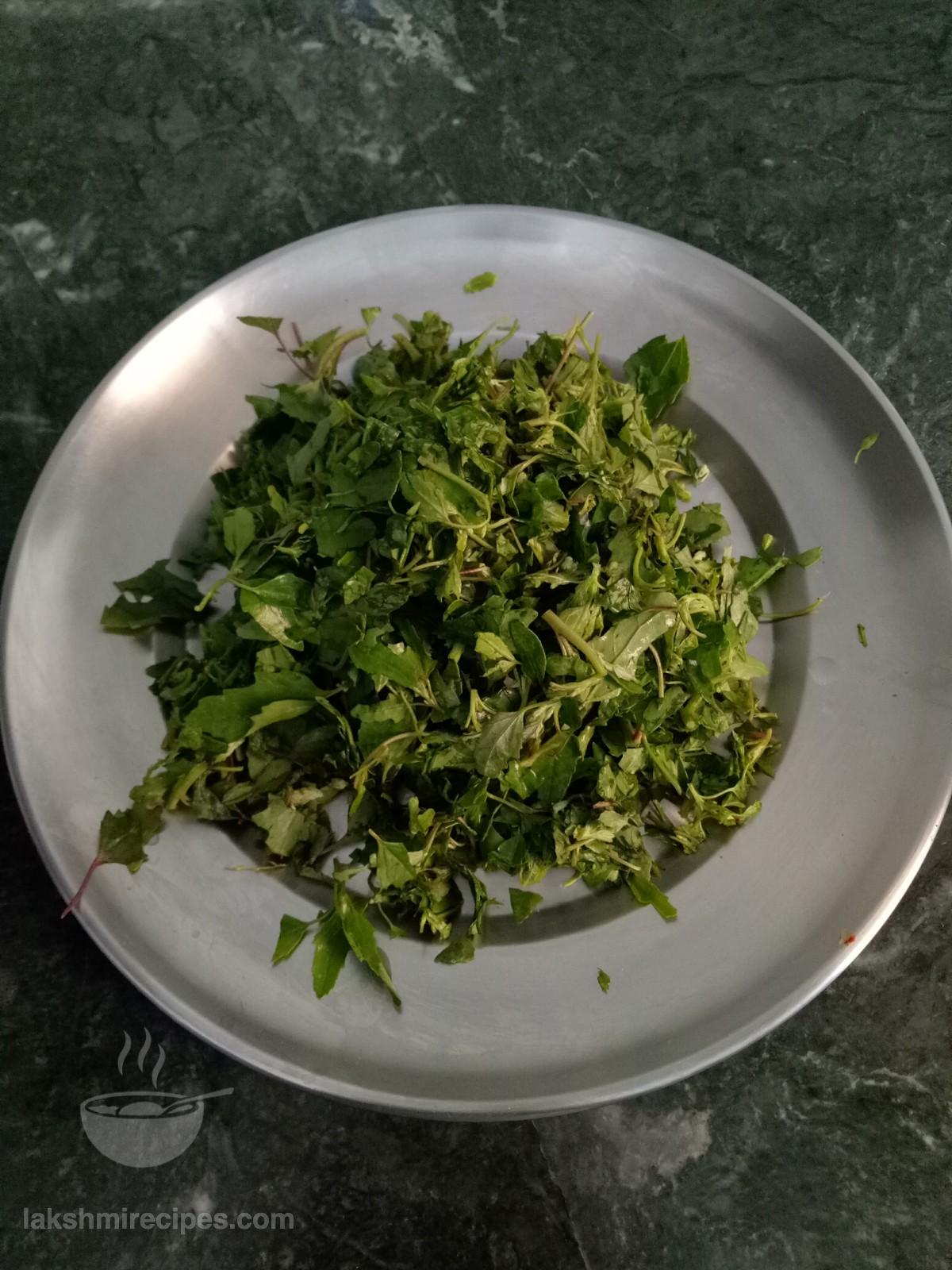 - Fresh Chenopodium Leaves or Taje Bathua ke Patte - 1.5 big cup, finely chopped