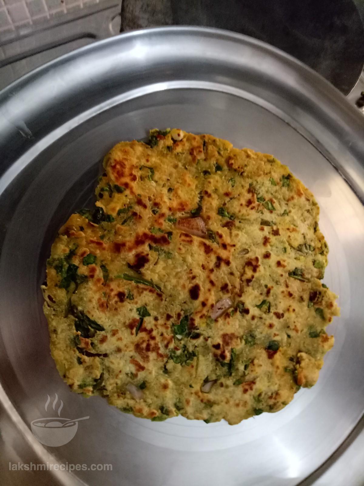 - Transfer the cooked hot Bathua Ka Paratha to a plate. Prepare all Bathua Ka Parathas in the same manner and serve them hot with curd and pickle.