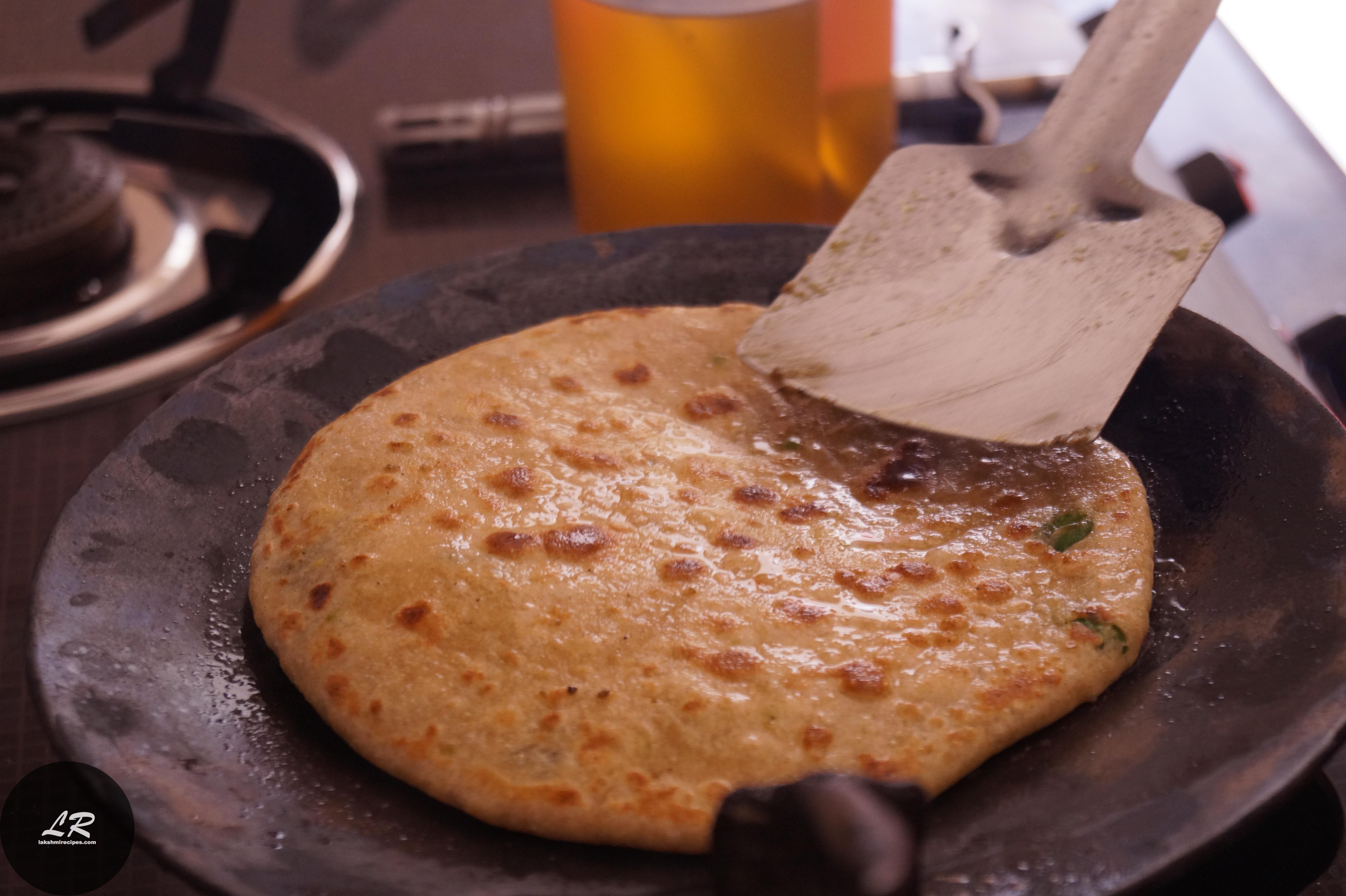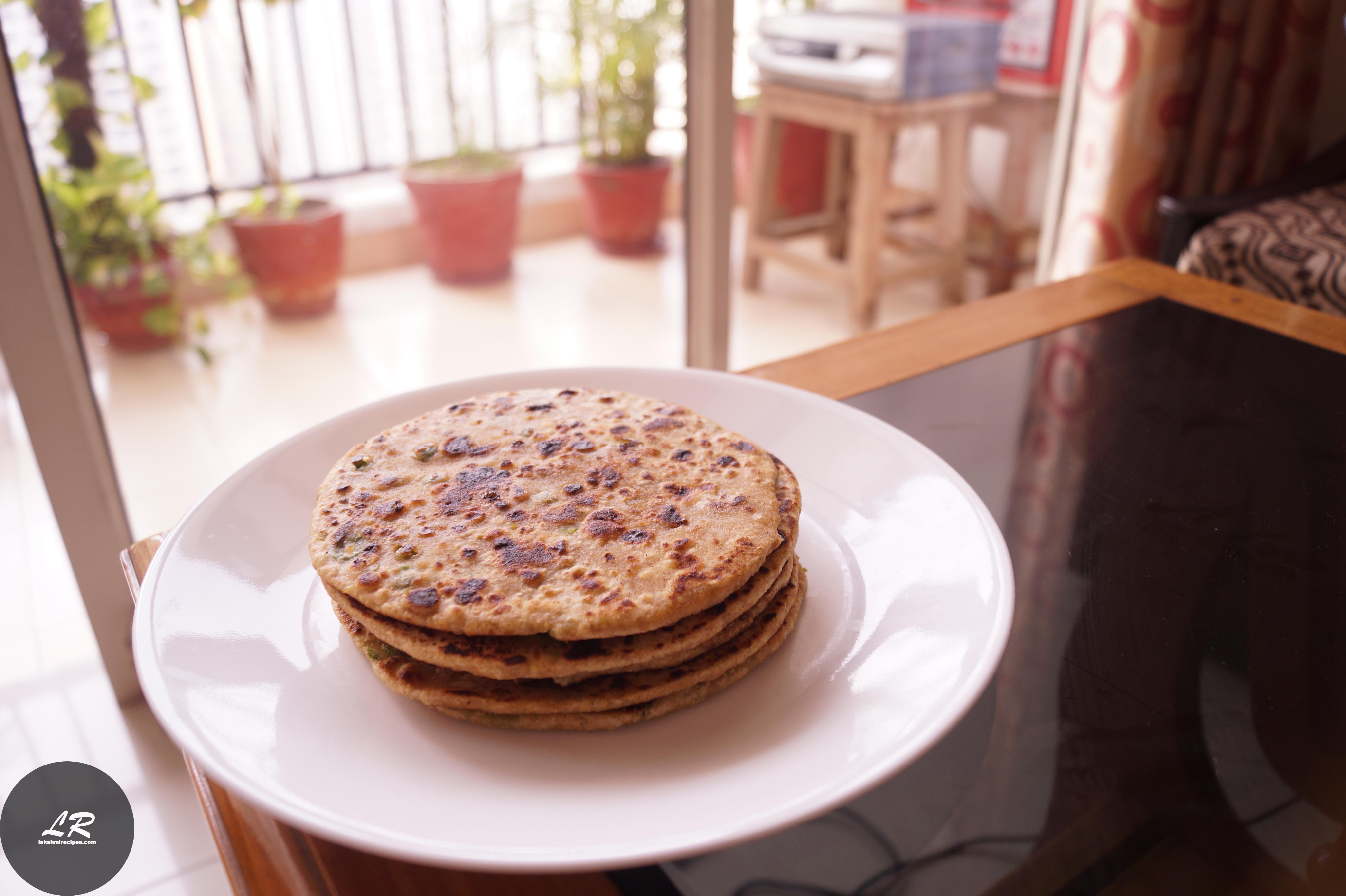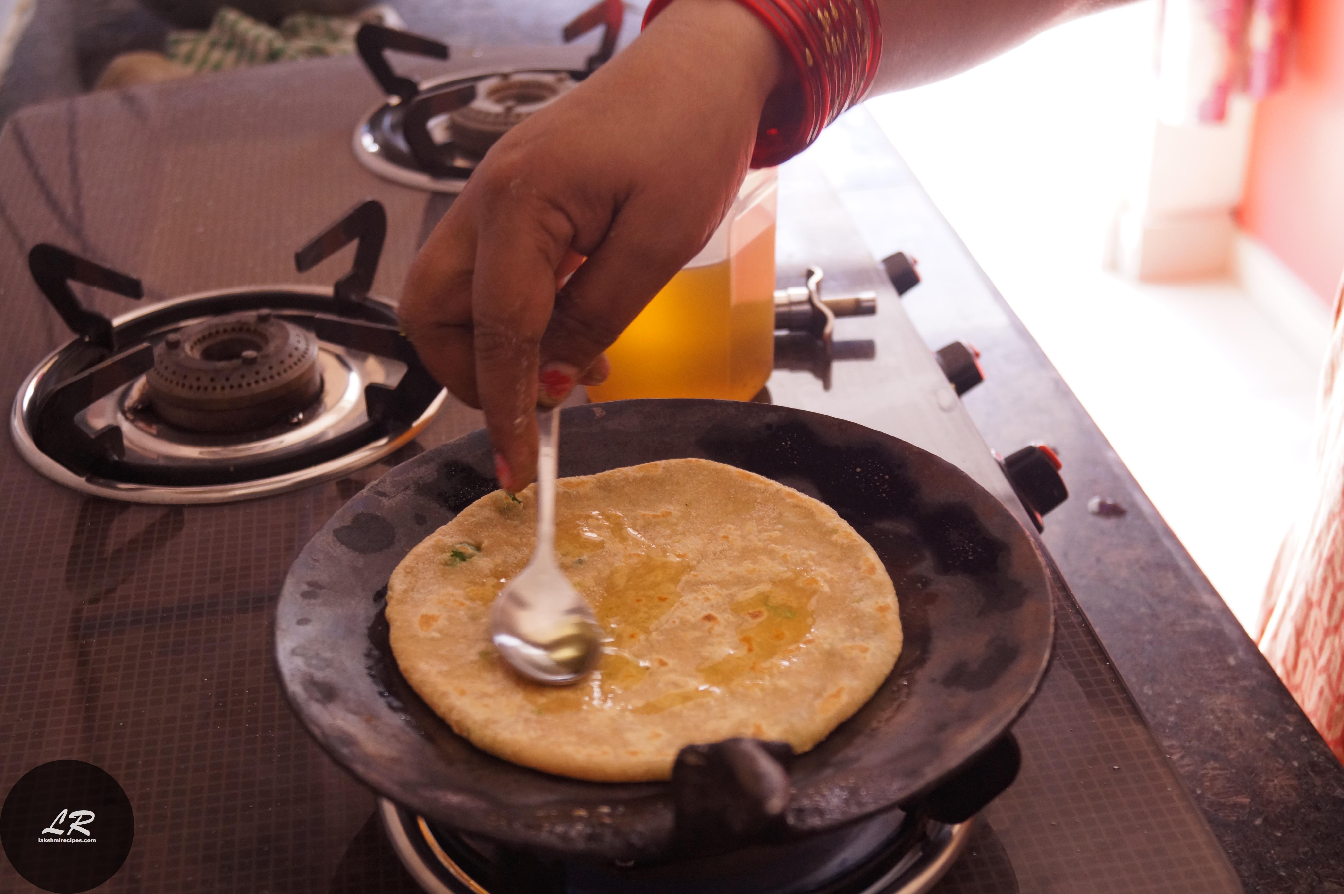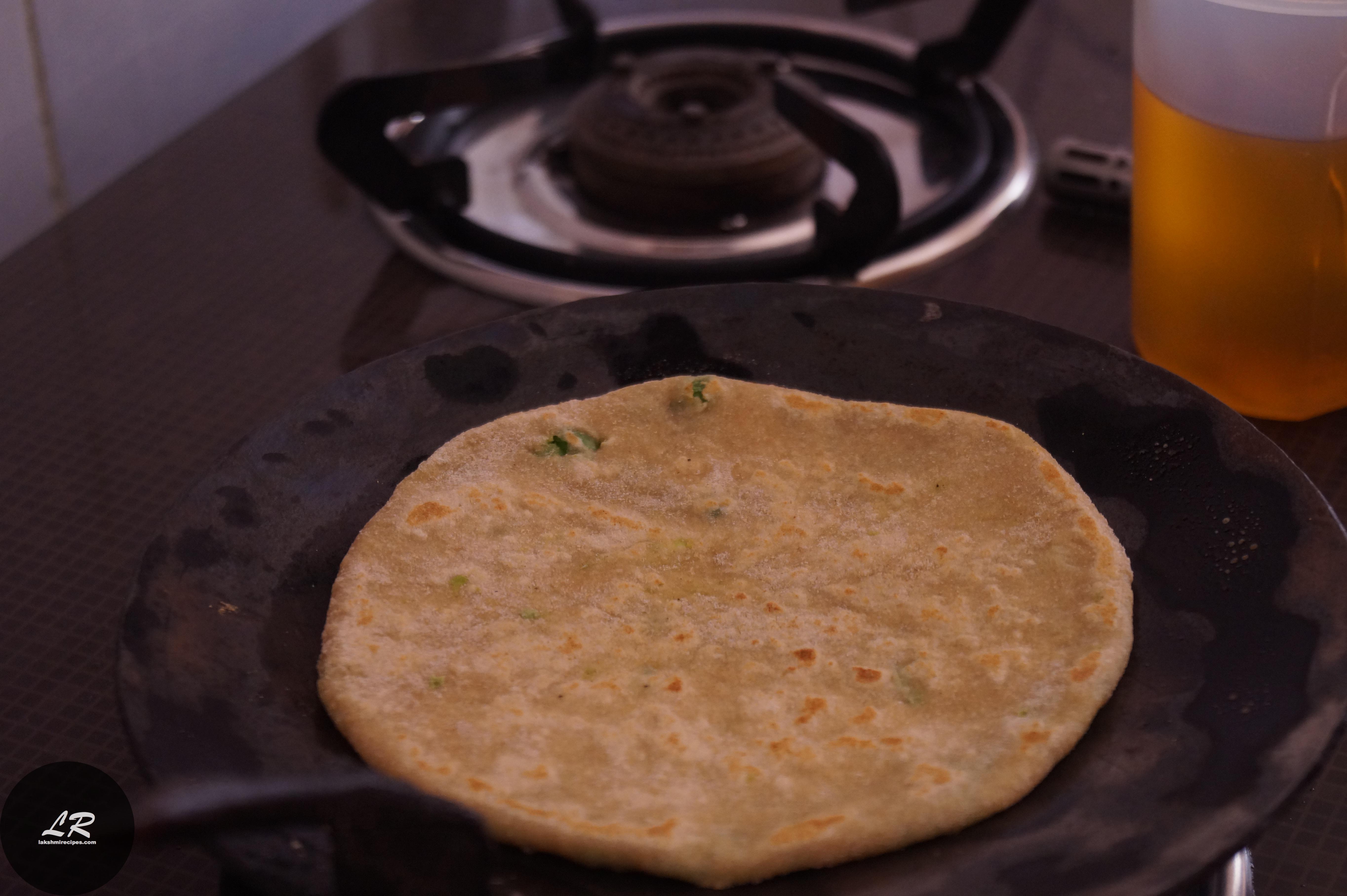 (Tips: 1. Prepare the dough and keep aside to rest while you prepare the stuffing. This will allow the dough to rest and become soft. 2. Cook on medium flame. High flame will blacken the paratha, while it will remain uncooked and hard if cooked on low flame)
