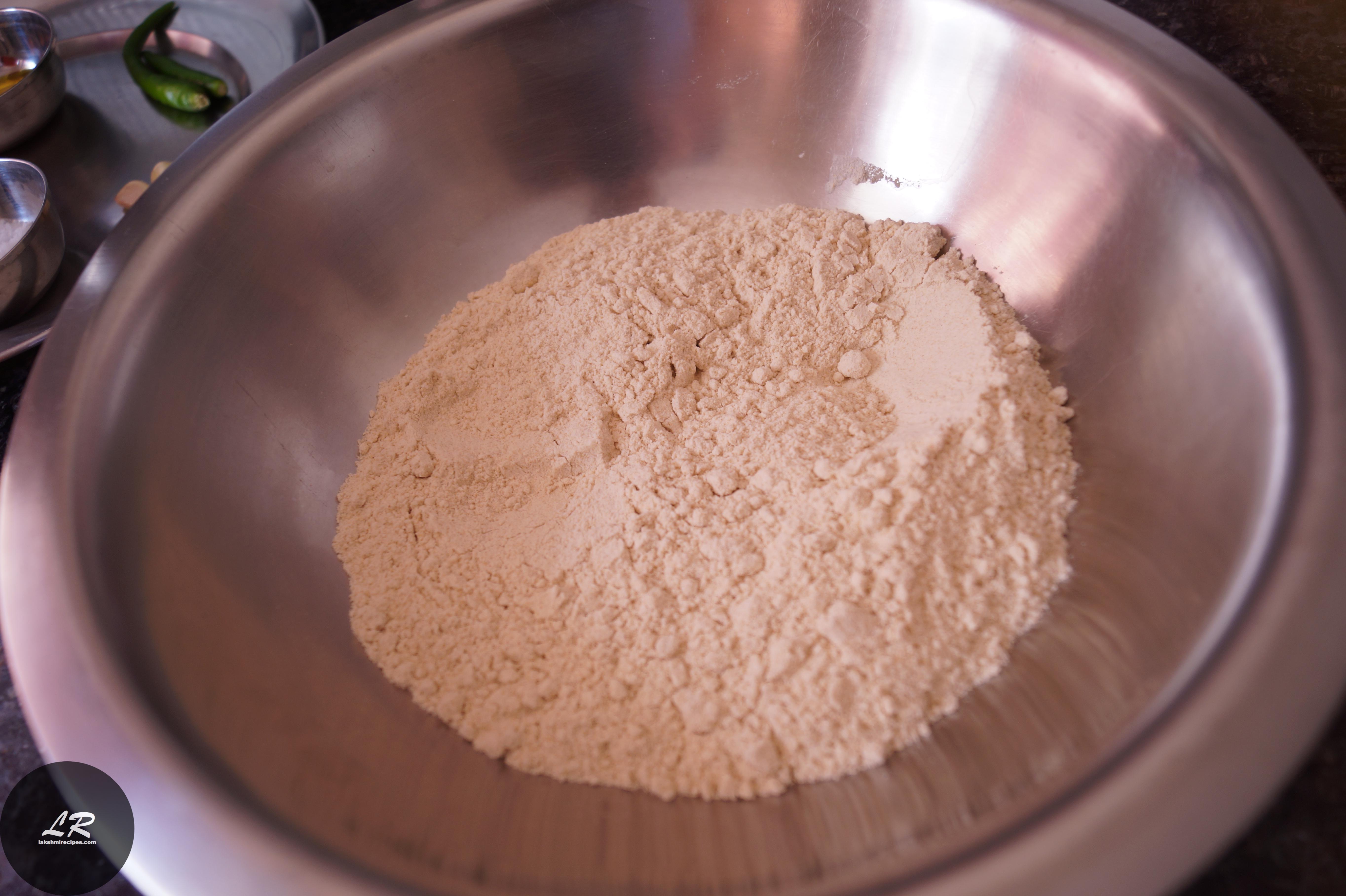 - In a plate take whole wheat flour (gehun ka ata) and add water to it to form a medium soft dough like that of chapatti. Keep it aside to rest so that it becomes soft.