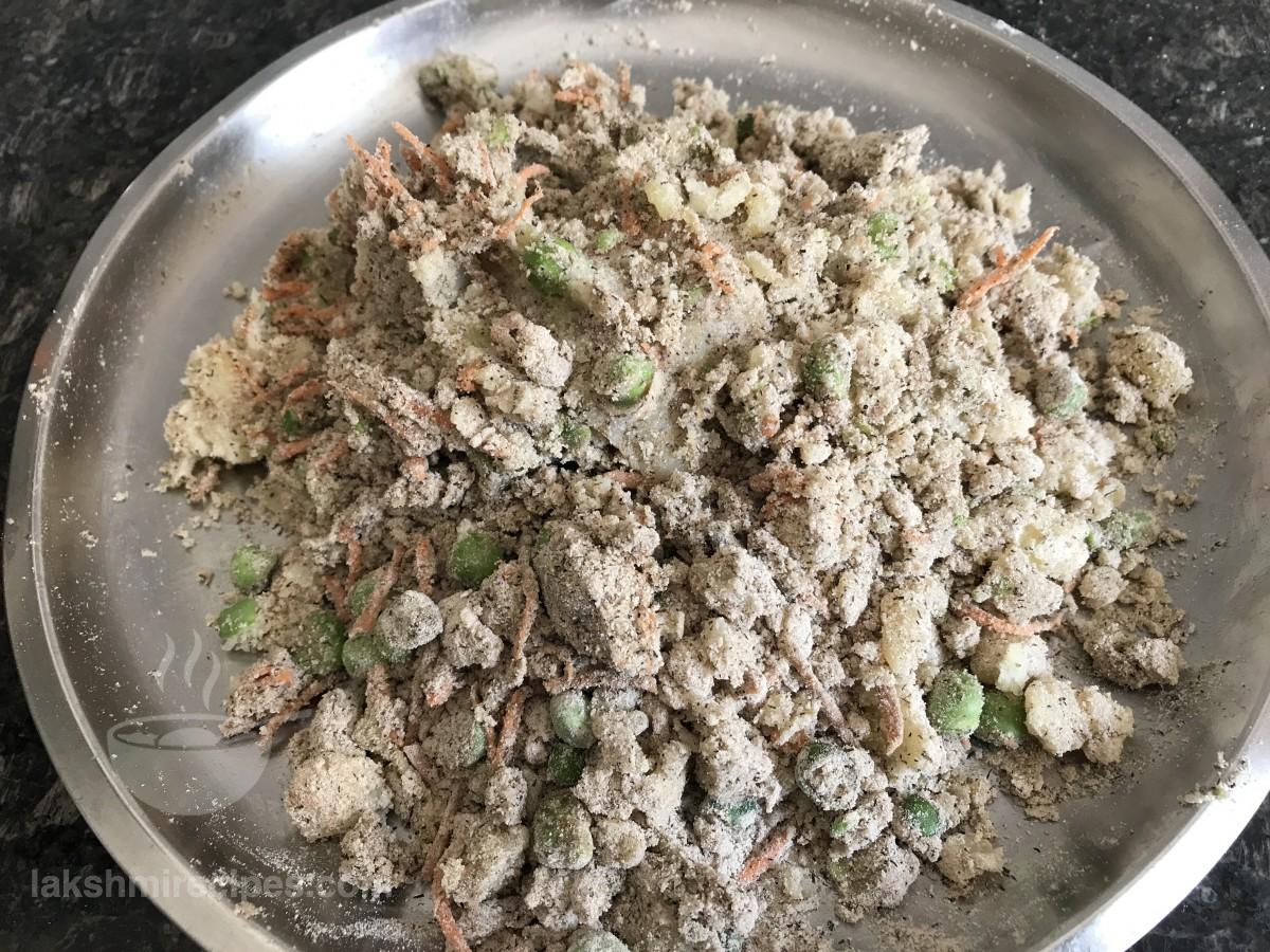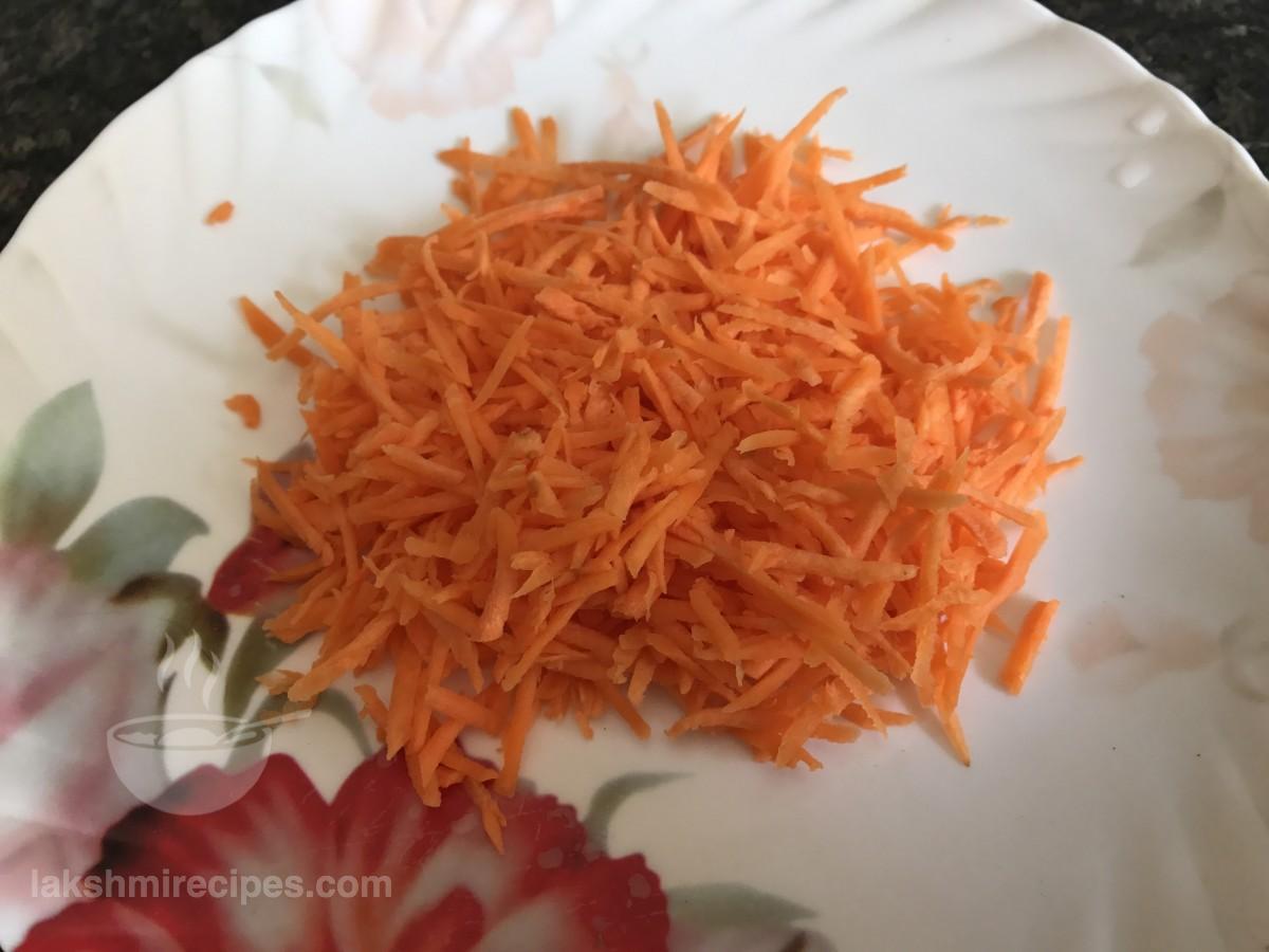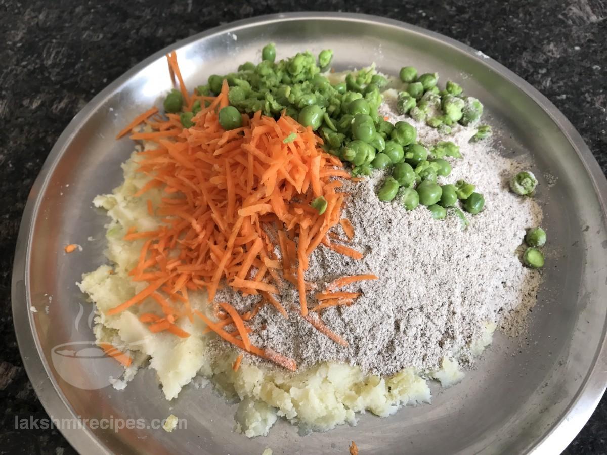 - फिर इसमें मोटे तौर पर पिसी हुई हरी मटर और कद्दु-कस की हुई गाजर डालें।