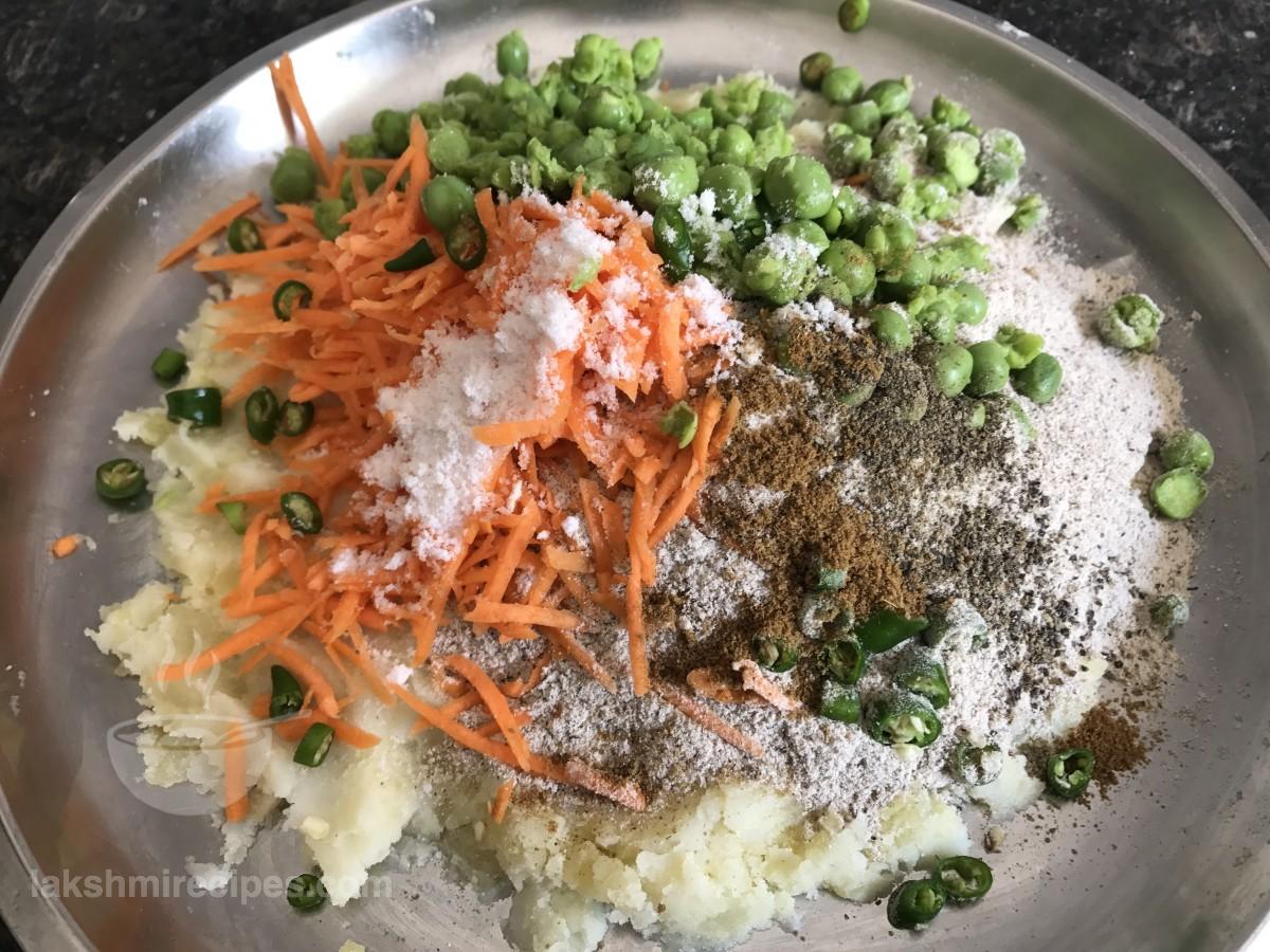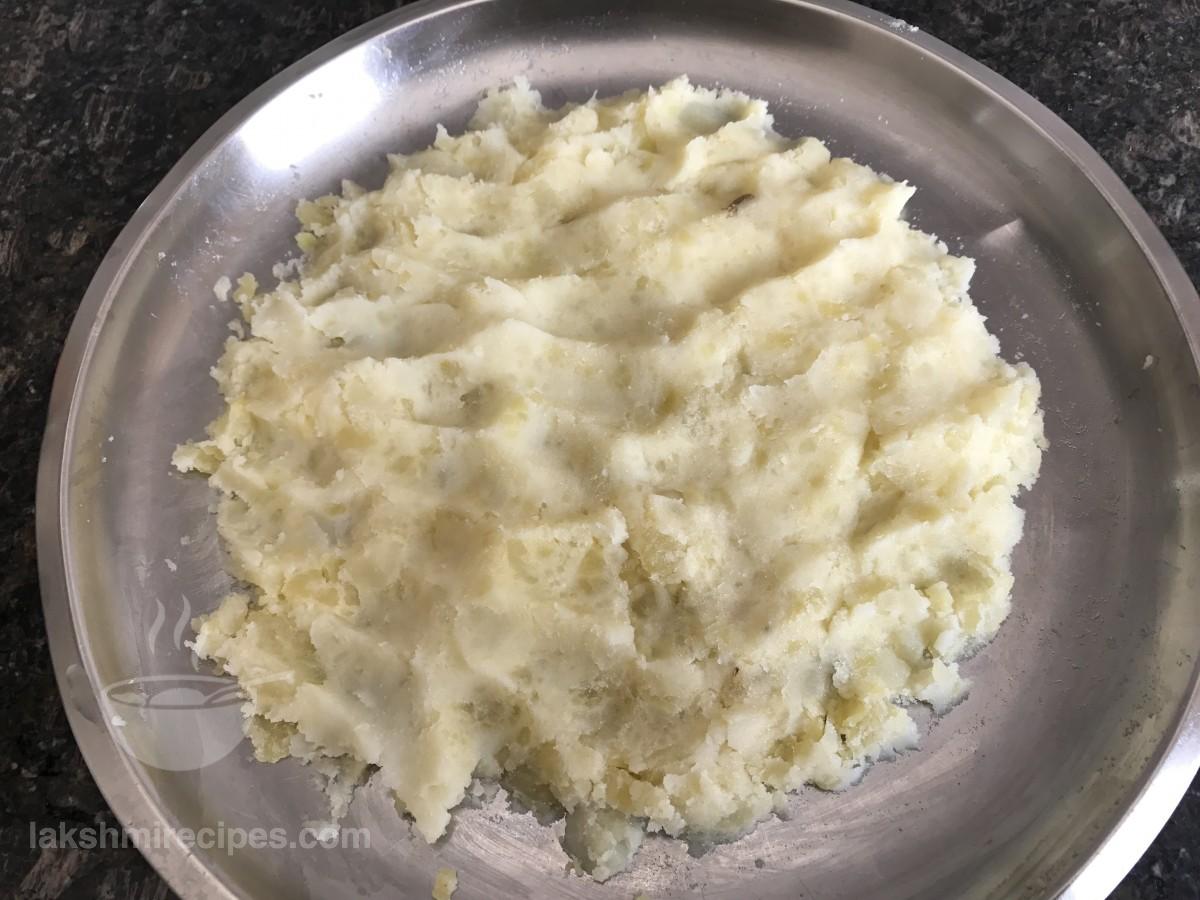 - एक बड़ी प्लेट लें और उसमें मैश किया हुआ आलू डालें।