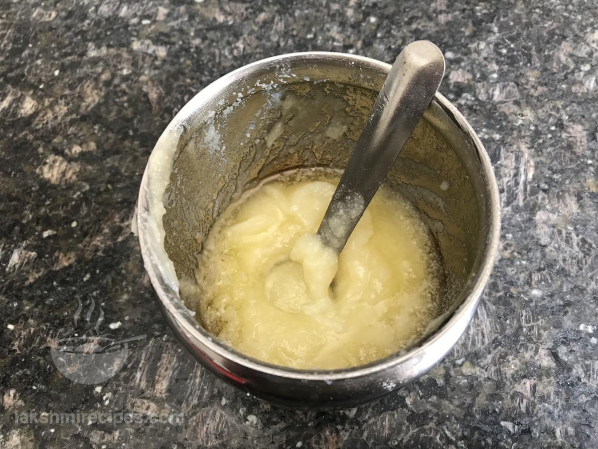 - अब, एक नॉन-स्टिक पैन गरम करें और इस पर 1 छोटी चम्मच शूद्घ घी डालकर फैलाएं।