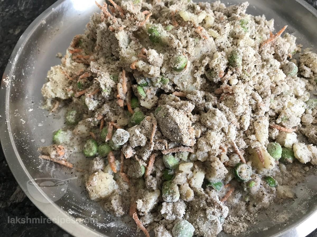 - सामग्री को अच्छी तरह से मिलाएं और आटे के जैसा गूंधें। उबले हुए आलू सामग्री को बांधने में मदद करेंगे।