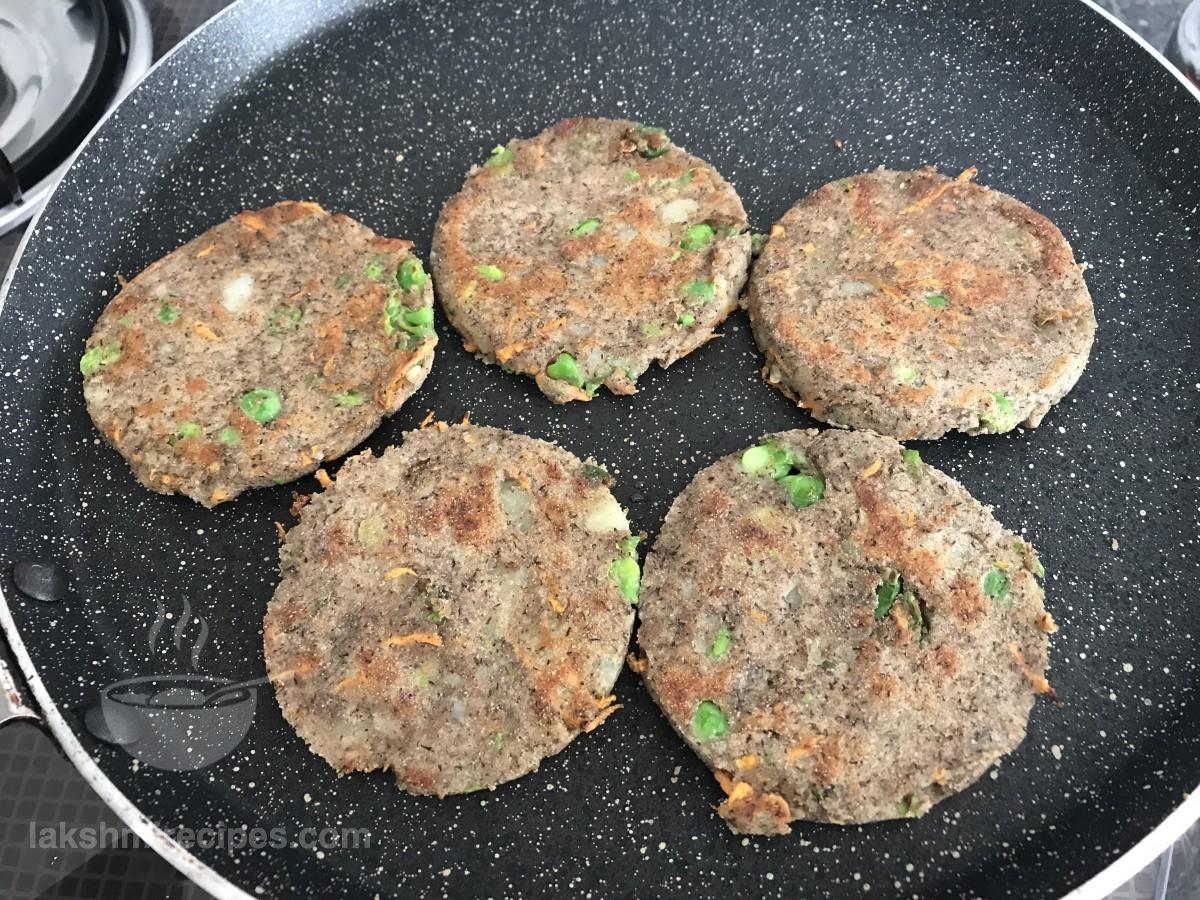 - Pour 1 tea spoon shudh ghee all around the cooking kuttu ke atte ke mini-parathe. Press and cook the kuttu ke atte ke mini-parathe till they are cooked and turn red on both the sides.