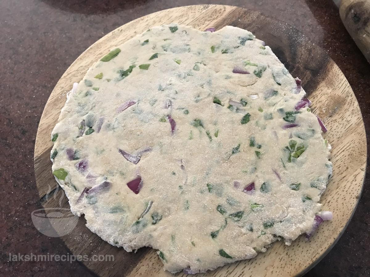 - Then roll it flat and round like chapati. The rolled out Methi Ka Paratha should be slightly thicker than the normal chapati.