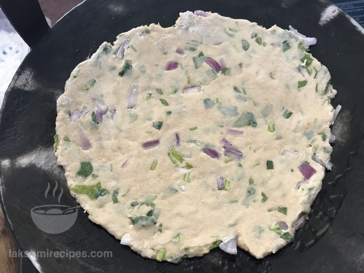 - Then heat a non-stick pan or tawa and grease it with 1 tea spoon ghee (you can use refined oil as per your requirement).
