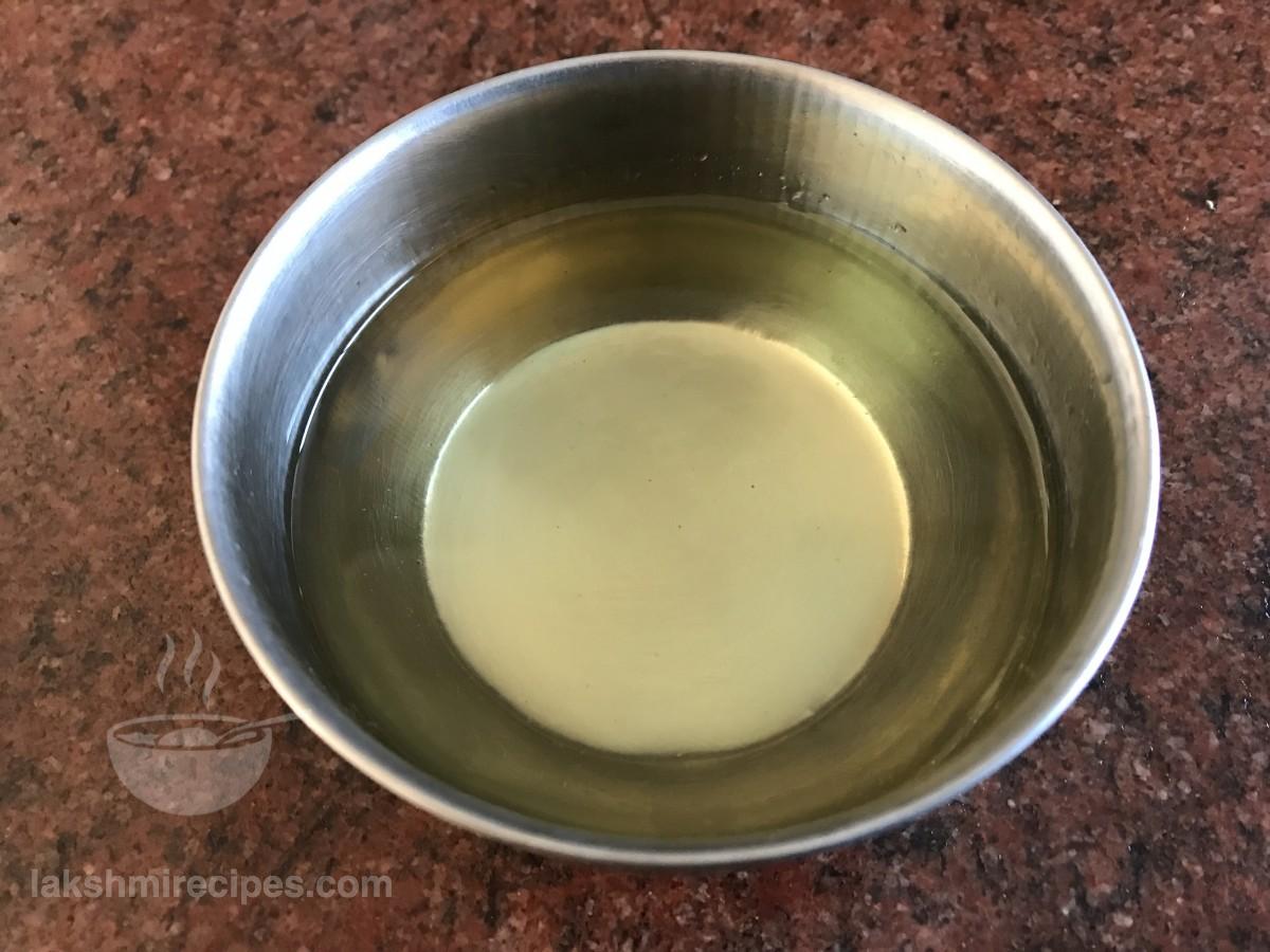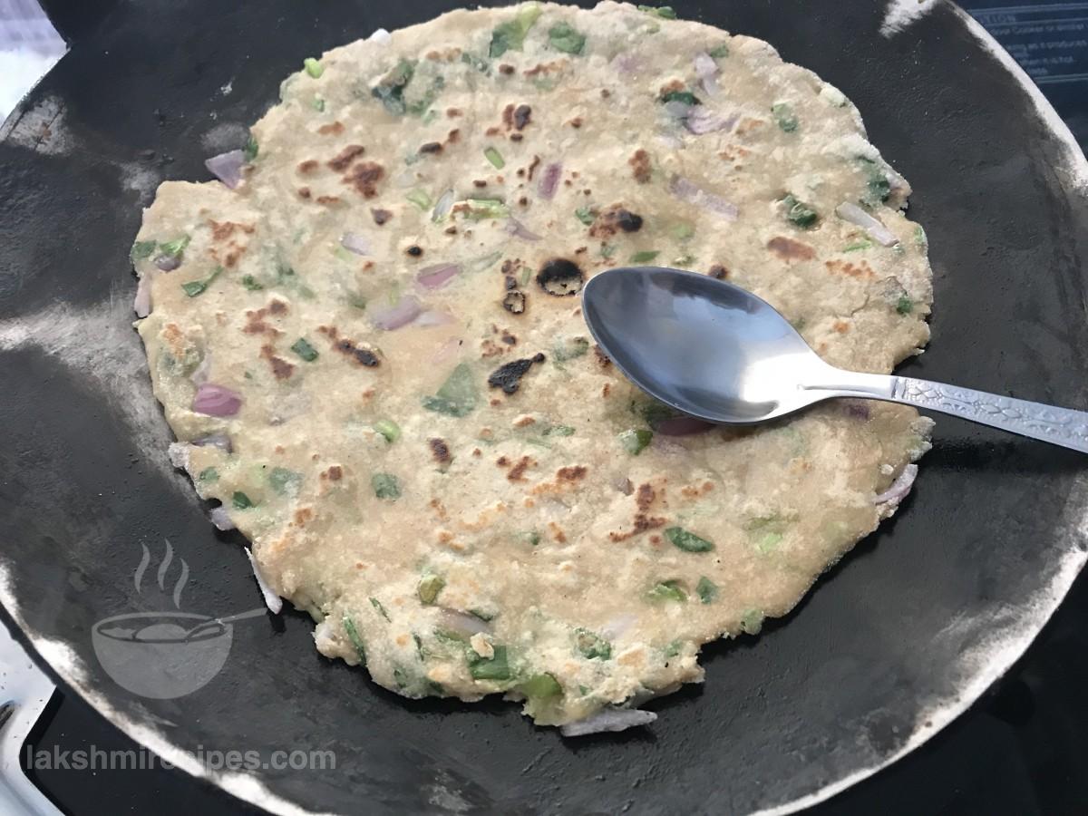 - फिर एक तावा गरम करें और इस पर 1 छोटी चम्मच देसी घी डालकर फैलाएं (आप अपनी आवश्यकता के अनुसार रिफाइंड तेल का उपयोग कर सकते हैं)।