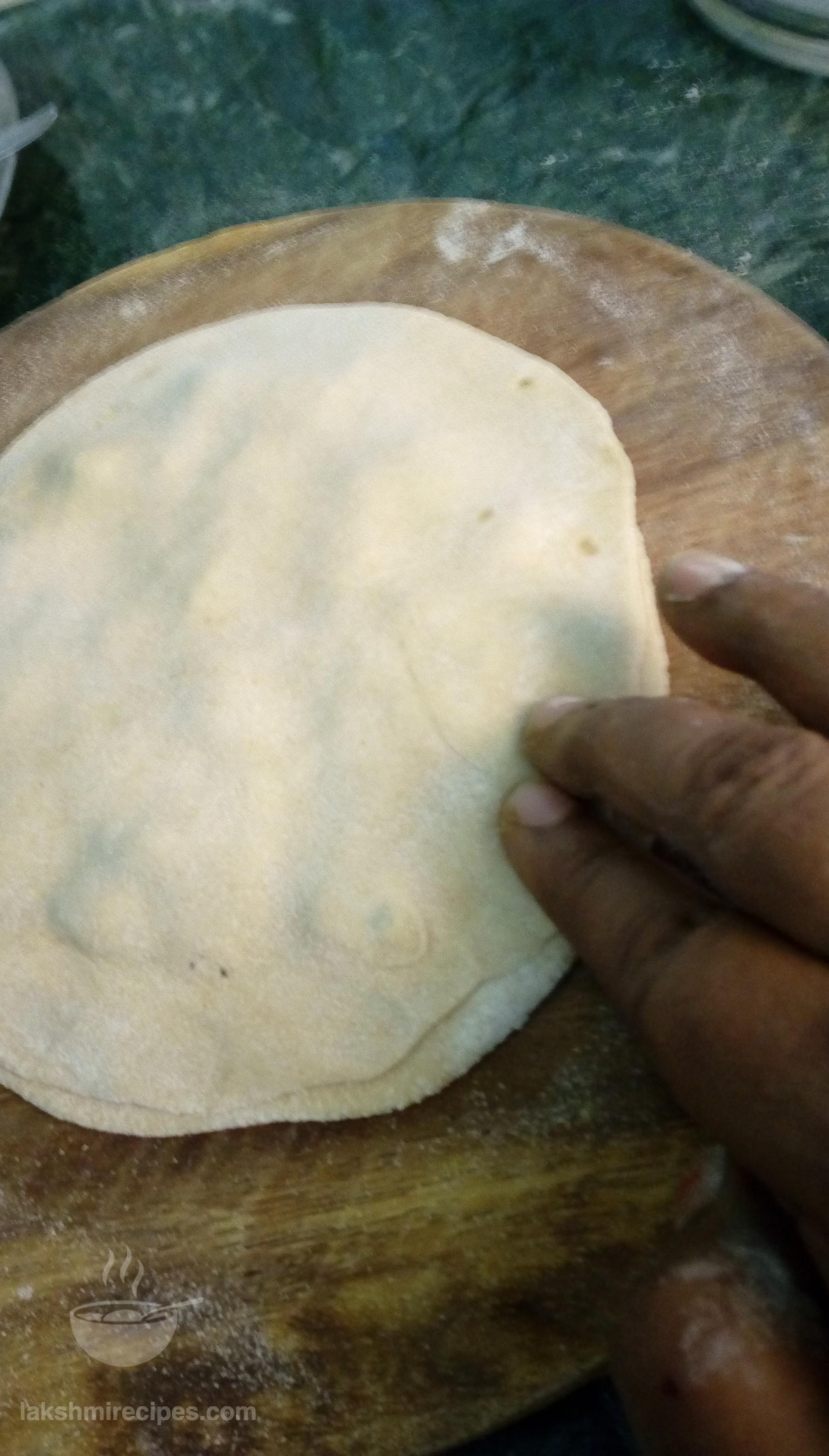 - Place the other chapatti on top of it. Bind the edges on the two chapattis together using hands.