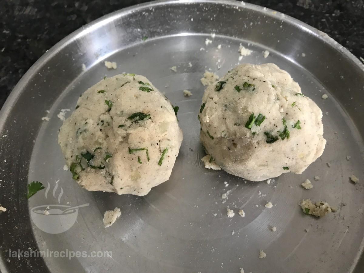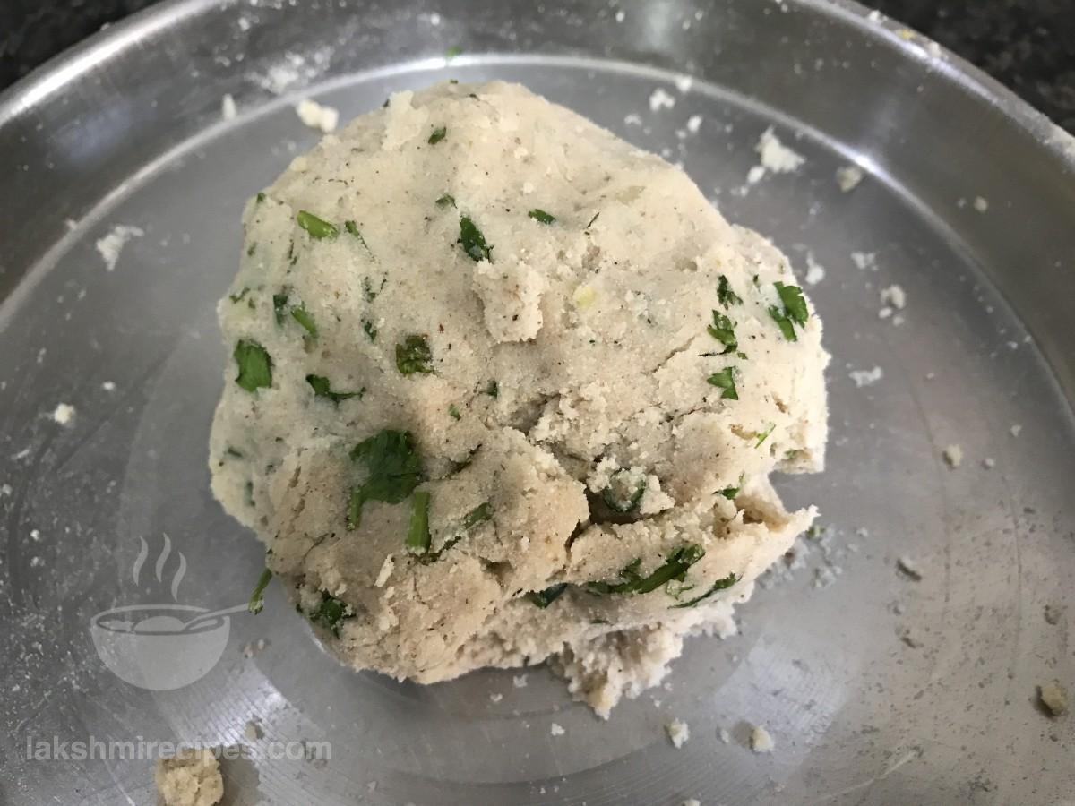 - सामग्री को अच्छी तरह से मिलाएं और आटे के जैसा गूंधें। उबले हुए आलू सामग्री को बांधने में मदद करेंगे।