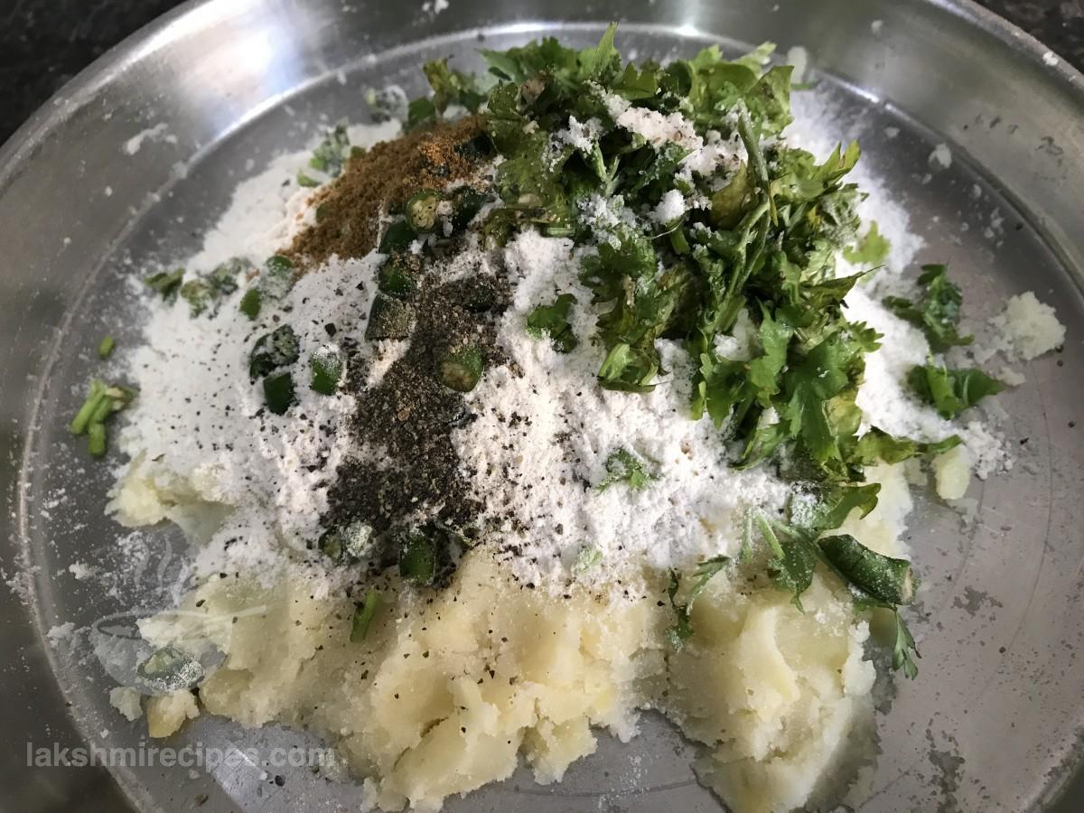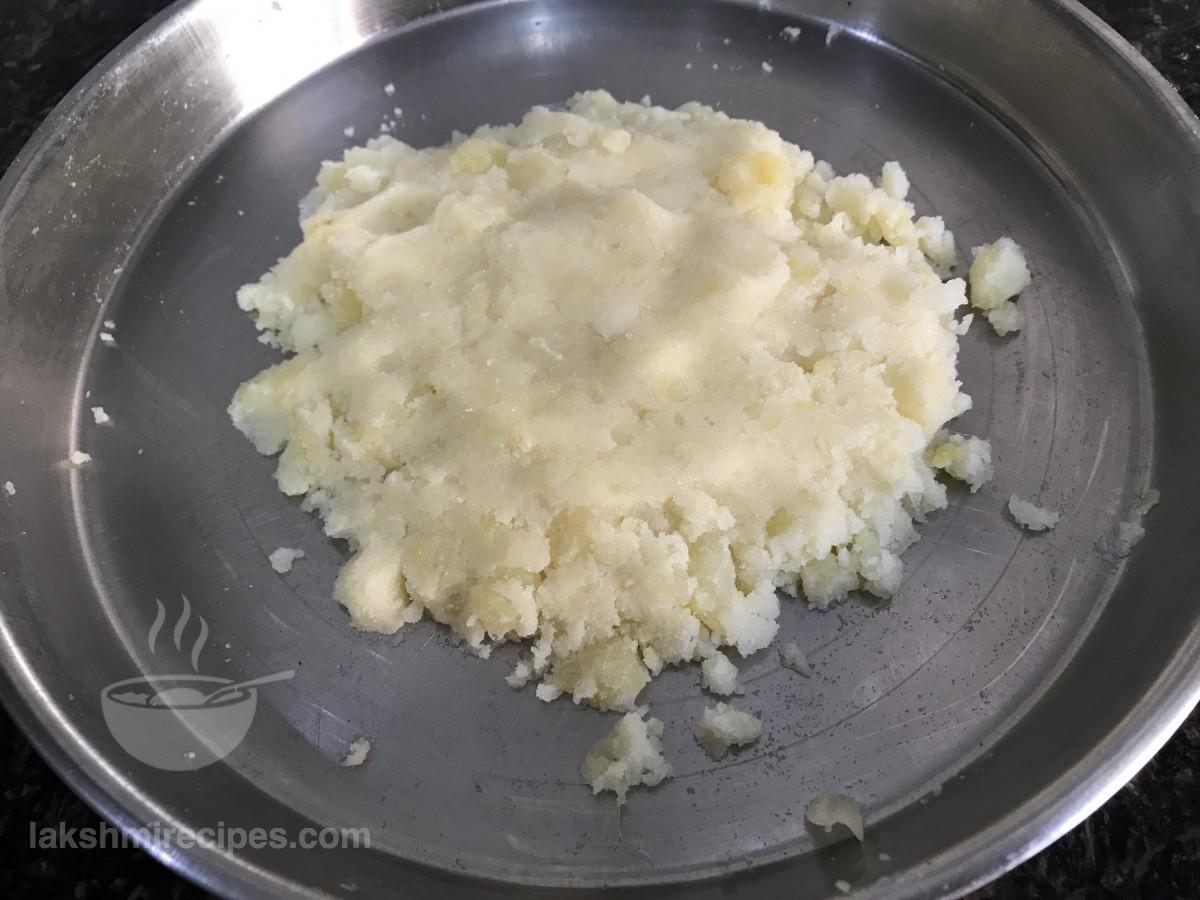 - एक बड़ी प्लेट लें और उसमें मैश किया हुआ आलू डालें।