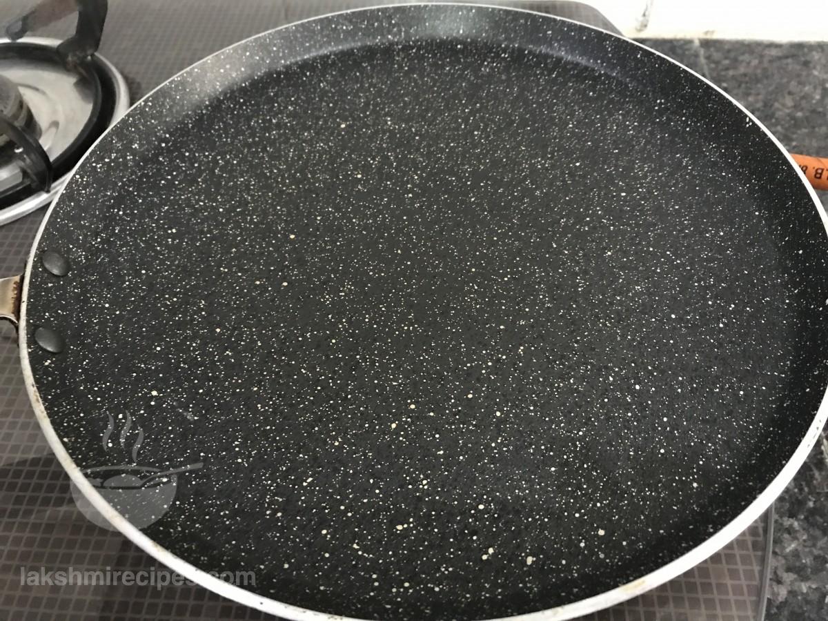 - Now, heat a non-stick pan and grease it with 1 tea spoon shudh ghee.
