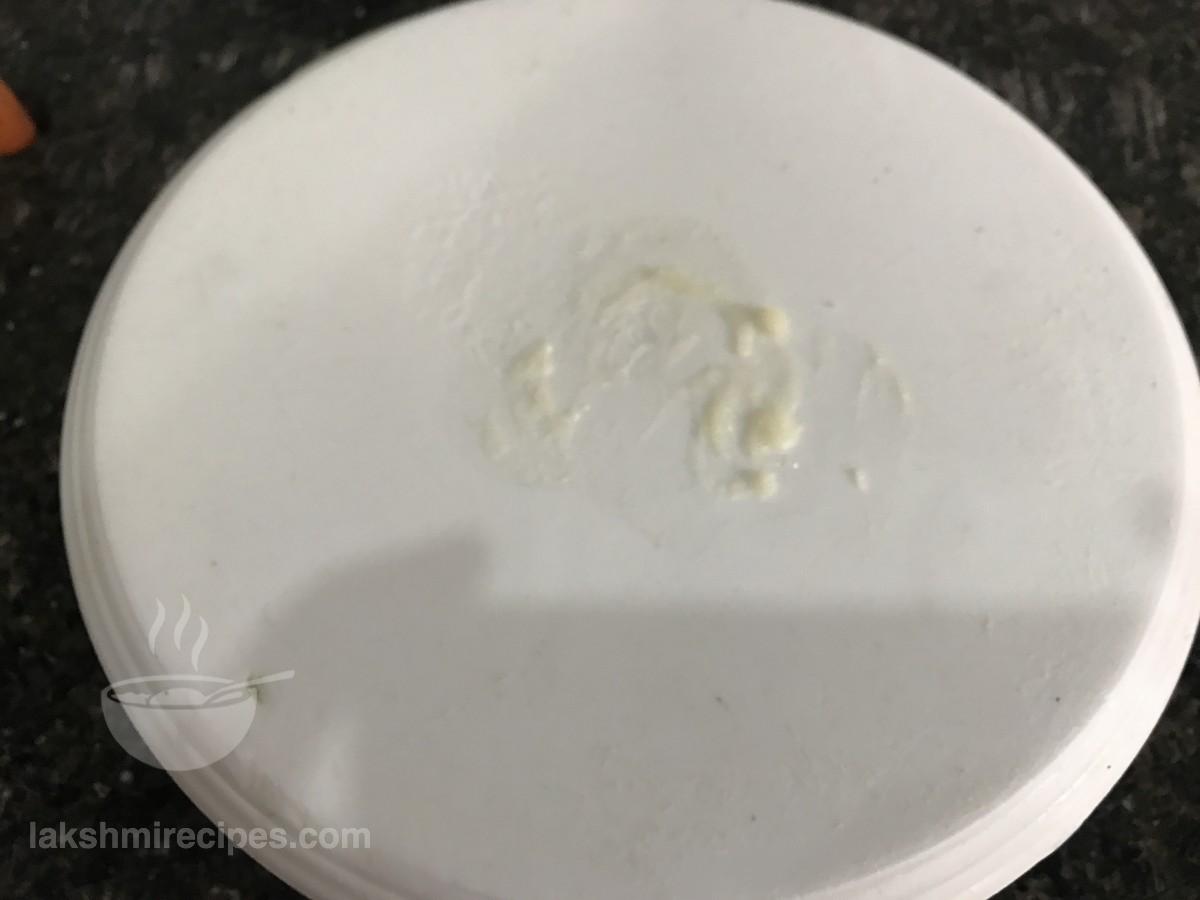 - Now take the rolling plate and grease it with 1 tea spoon desi ghee.