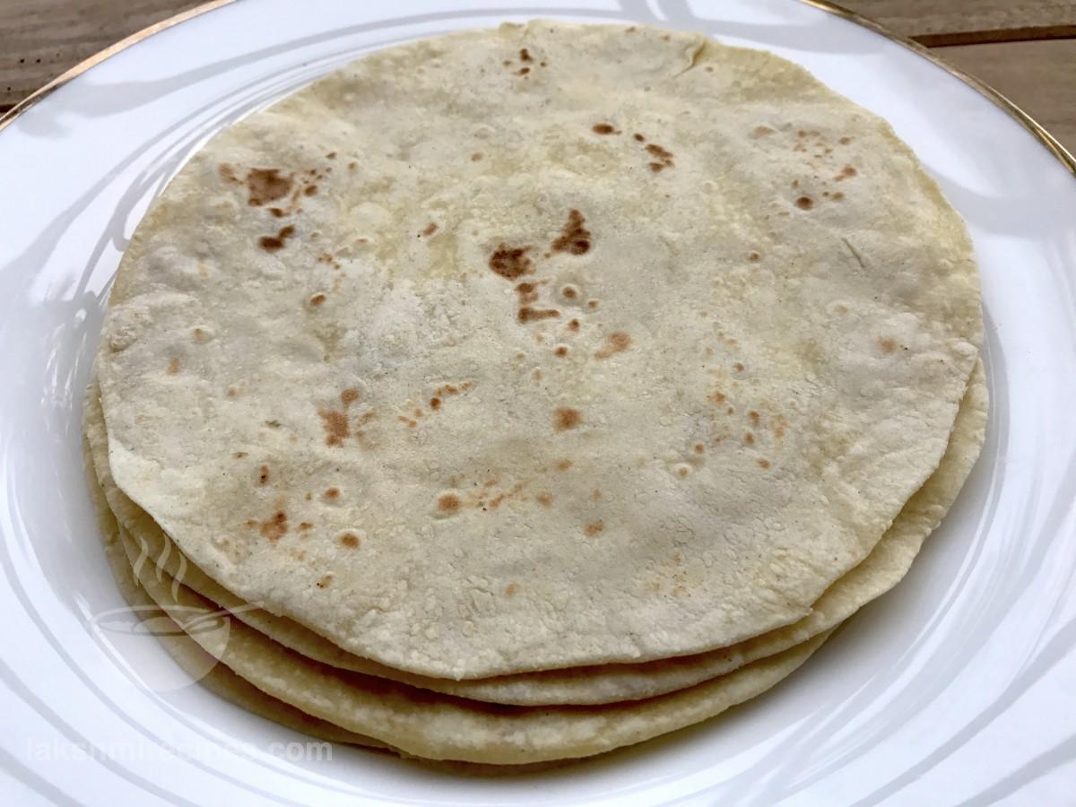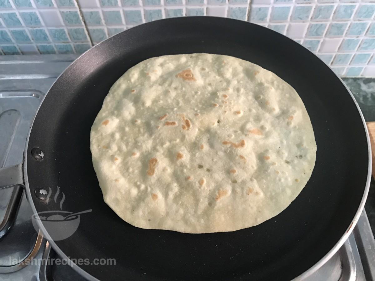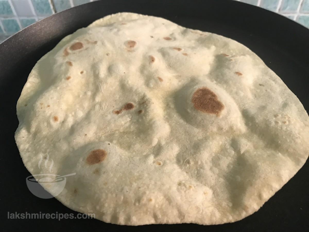- When one side gets cooked flip to cook the other side in the same manner. Flip and cook until light brown colored spots appear on either sides. Then remove it from the tawa and prepare other tortilla sheets in the same way. Tortilla sheet are made like the Indian chapatis, except the ingredients used are different. Place the prepared tortilla sheets in contaier covered with cloth so that they remain soft. (These tortilla sheets can be used for making tortilla rolls, quesadilla and burrito.)