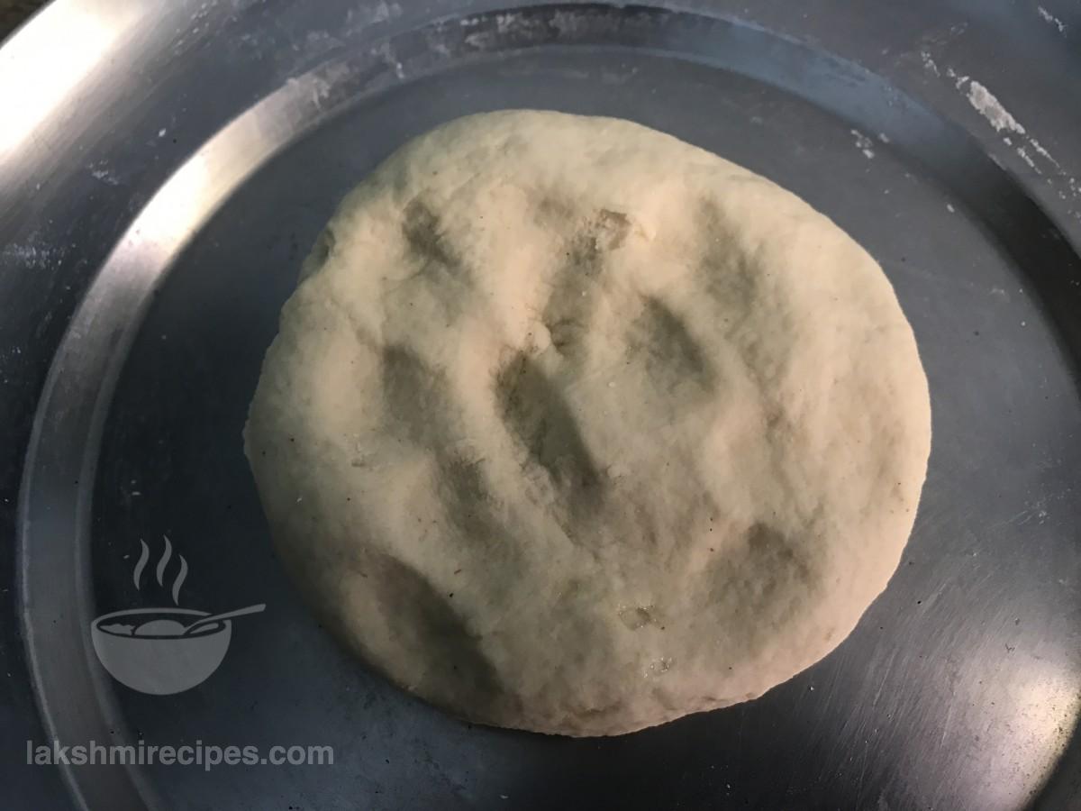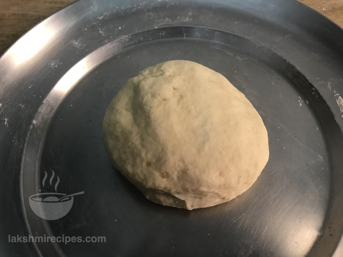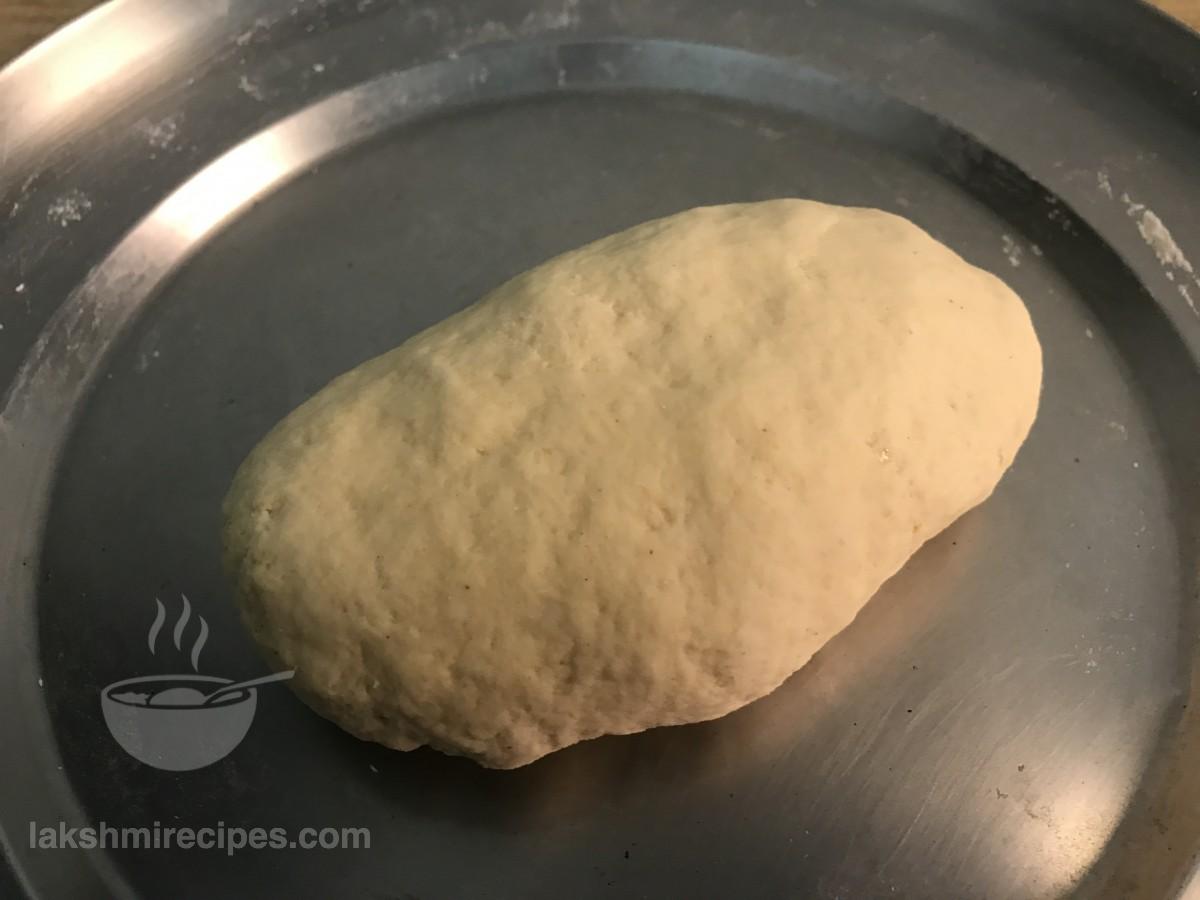 - अब एक साफ और नम कपड़े के साथ आटा को कवर करें, और उसे आधे घंटे (30 मिनट) के लिए अलग रख दें। आधे घंटे के बाद कपड़े को हटा दें और आटे को फिर से अच्छी तरह से गूंध लें और इसे चिकना करें।