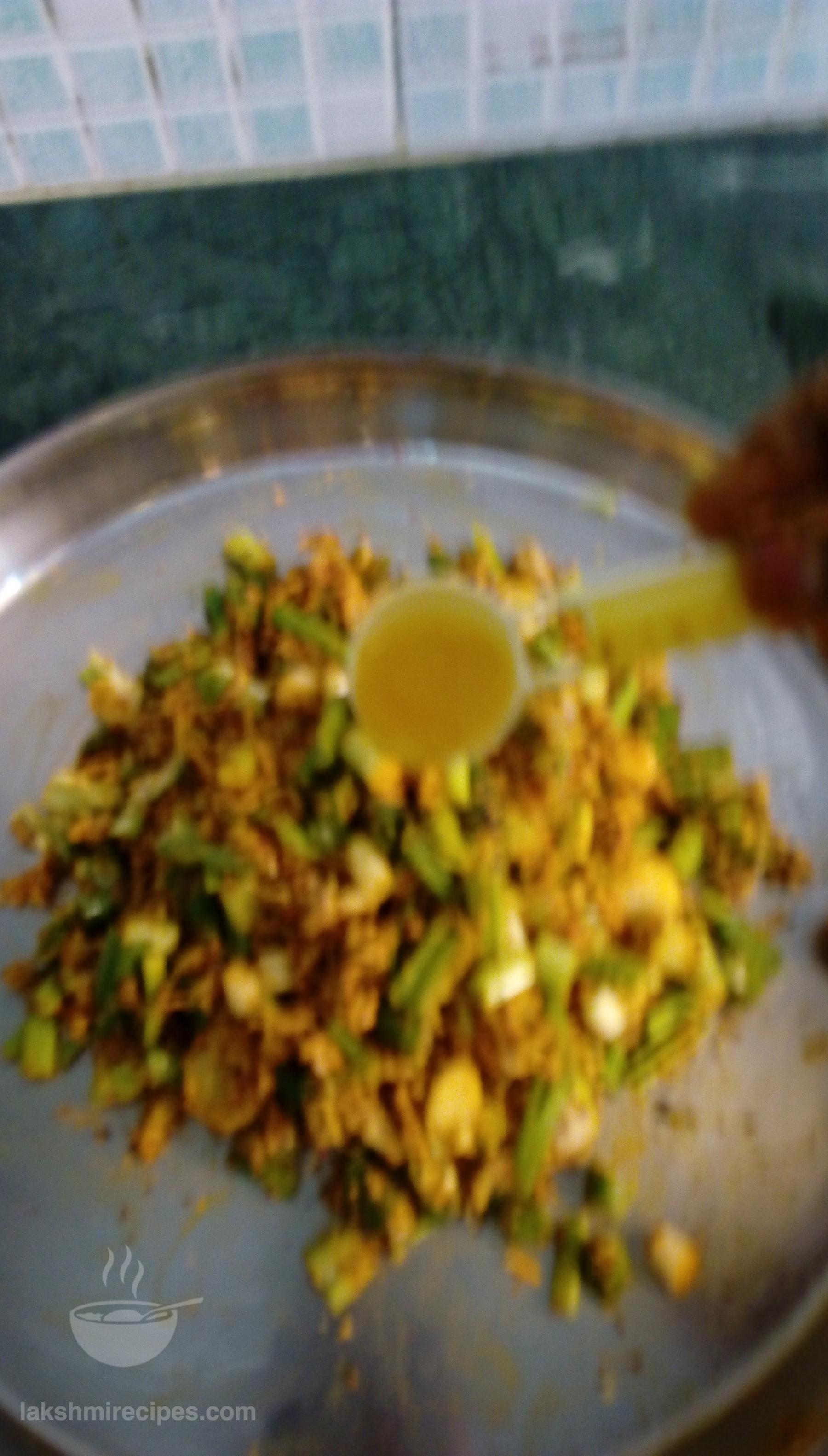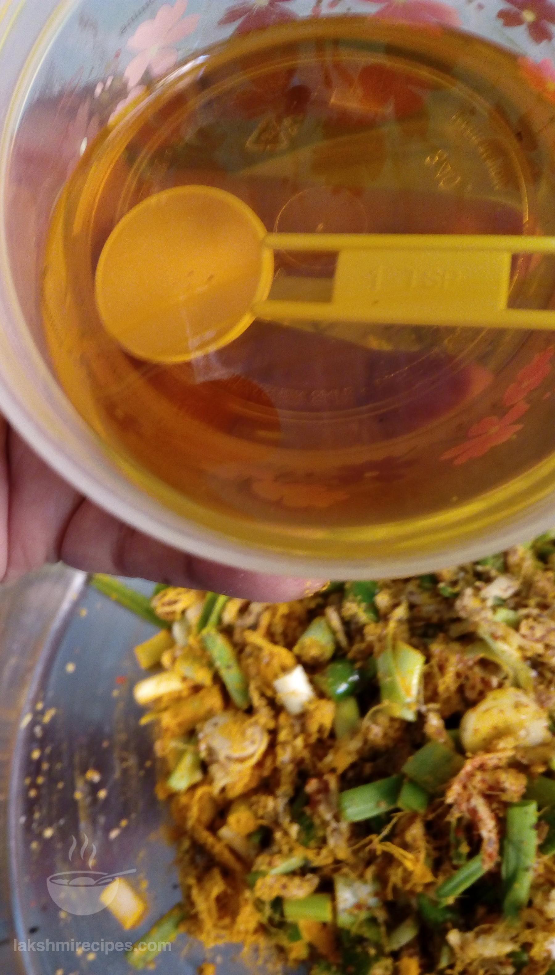 - Then add mustard oil (sarson ka tel) and salt to it. Mix again using hands.