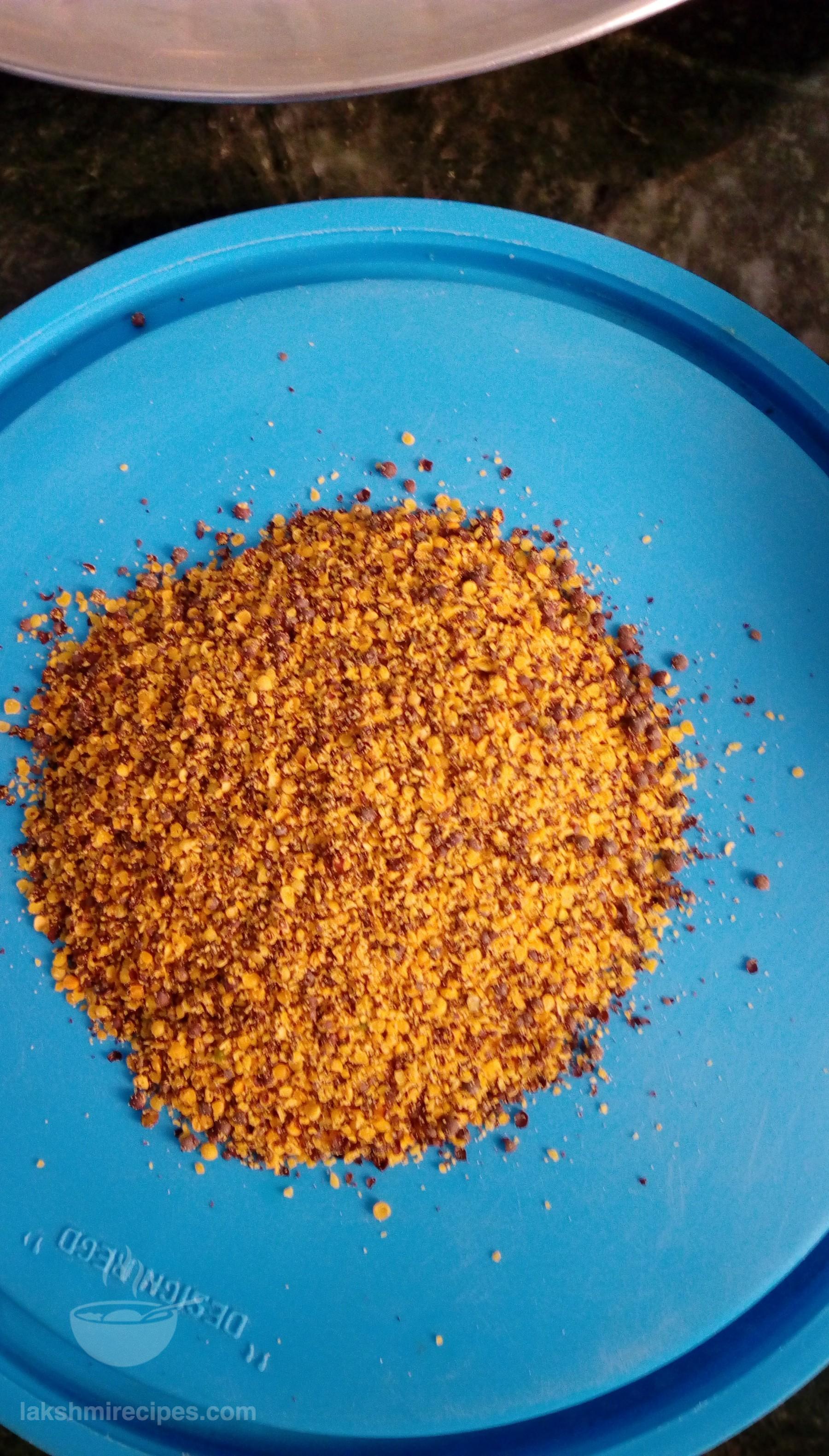 - Now add the mustard seeds powder (sarson dana ka powder) to this plate and mix up all the dry ingredients.