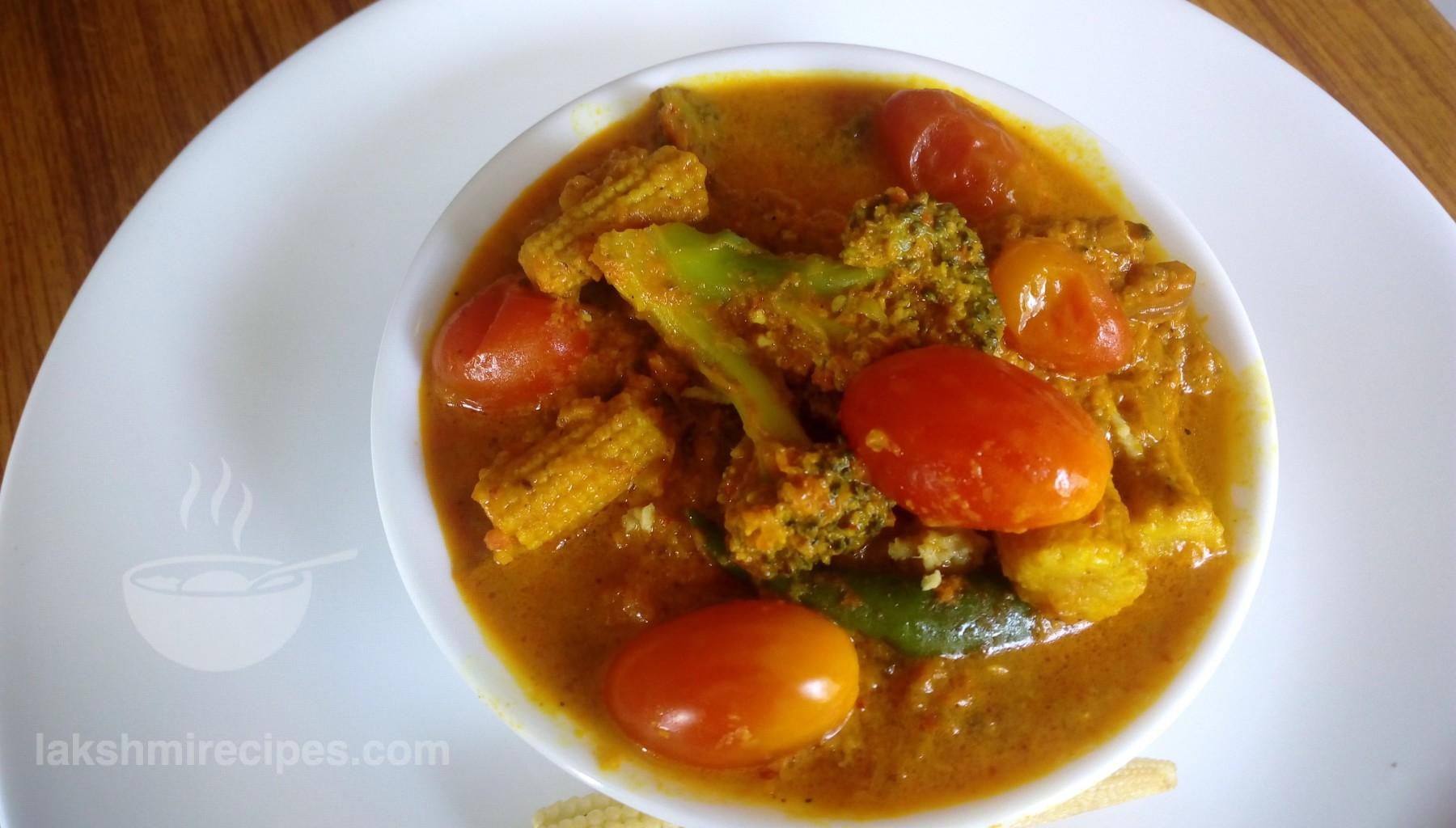 - Check at regular intervals till the vegetables are cooked. Cook till the vegetables become soft and the consistency of the gravy has become thick. Then turn off the flame. The baby corn and cherry tomato gravy is now ready to be served.