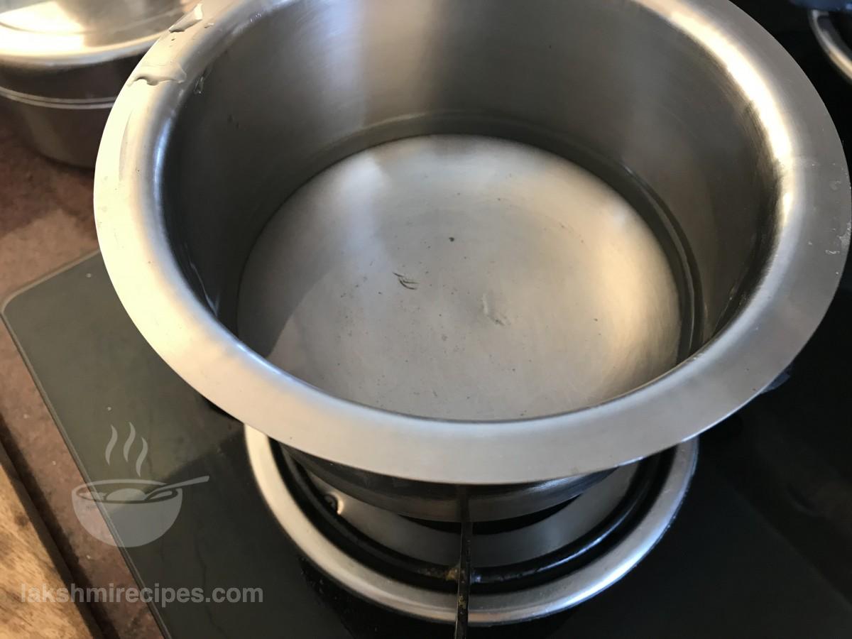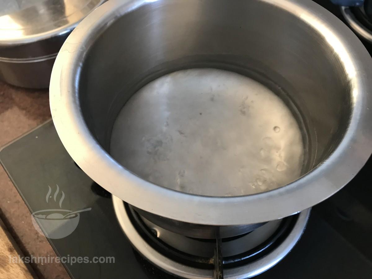 - अब एक गहरे पैन में थोड़ा पानी डालें और इसे तेज आंच पर उबलने के लिए सेट कर दें।