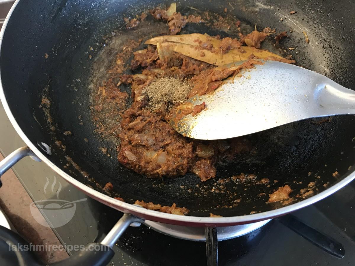 - इअब कढ़ाई में गरम मसाला पाउडर डालें। लगातार चलाते हुए सामग्री को एक साथ कुछ सेकंड तक पकाएं।