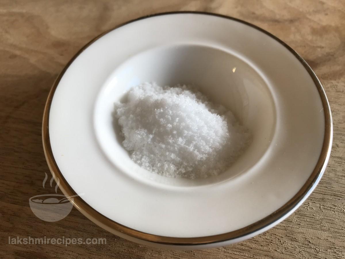 - एक प्लेट या कटोरे में बेसन और थोड़ा सा नमक डालें। (नमक जरूरत से थोड़ा कम ही डालें)