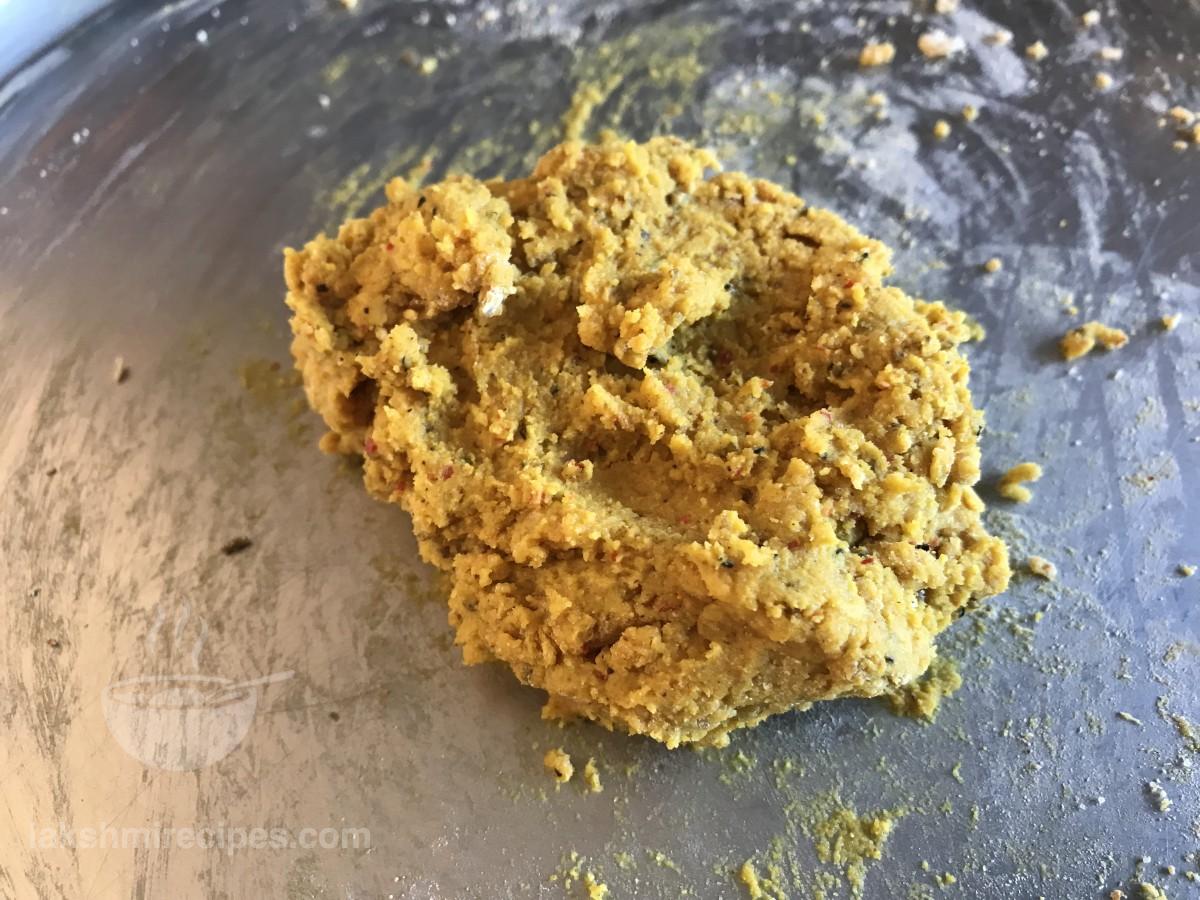 - थोड़ा पानी डालें और फिर से मिलाएं, और सख्त आटे के जैसा गूधें।