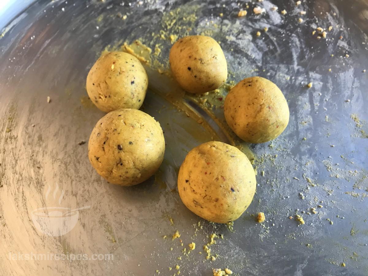 - Now prepare small lemon sized balls from this dough (as shown in the images below).
