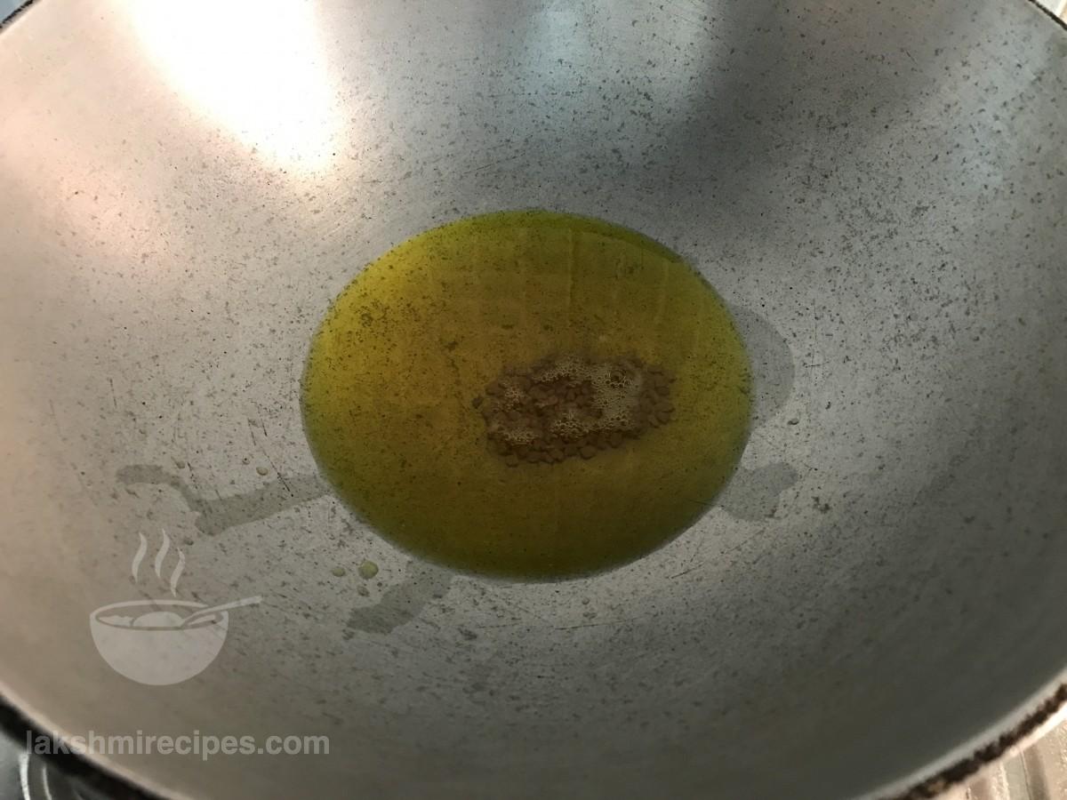 - When the oil is hot enough for cooking then add fenugreek seeds. Allow the fenugreek seeds to crackle.