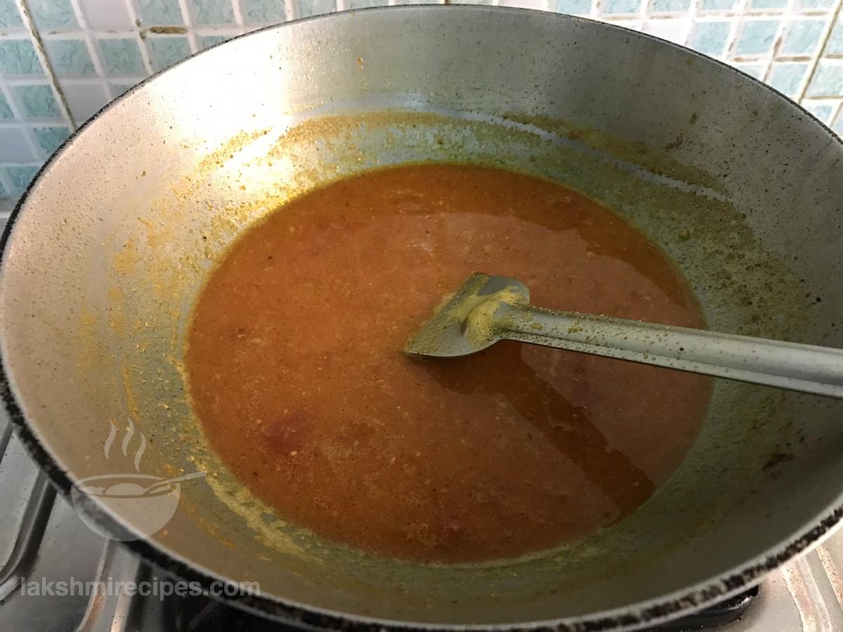 - Allow the gravy prepared to come to a boil, and then lower the flame. Cook the gravy over low flame for 2 minutes and then turn off the flame. The gravy for Besan Ki Machhli is ready.