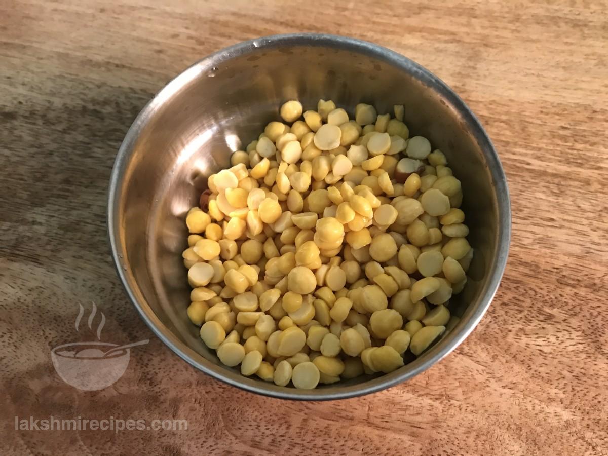 - Bengal Gram - 1 big cup soaked in plain water for 4 hours; (चना दाल)