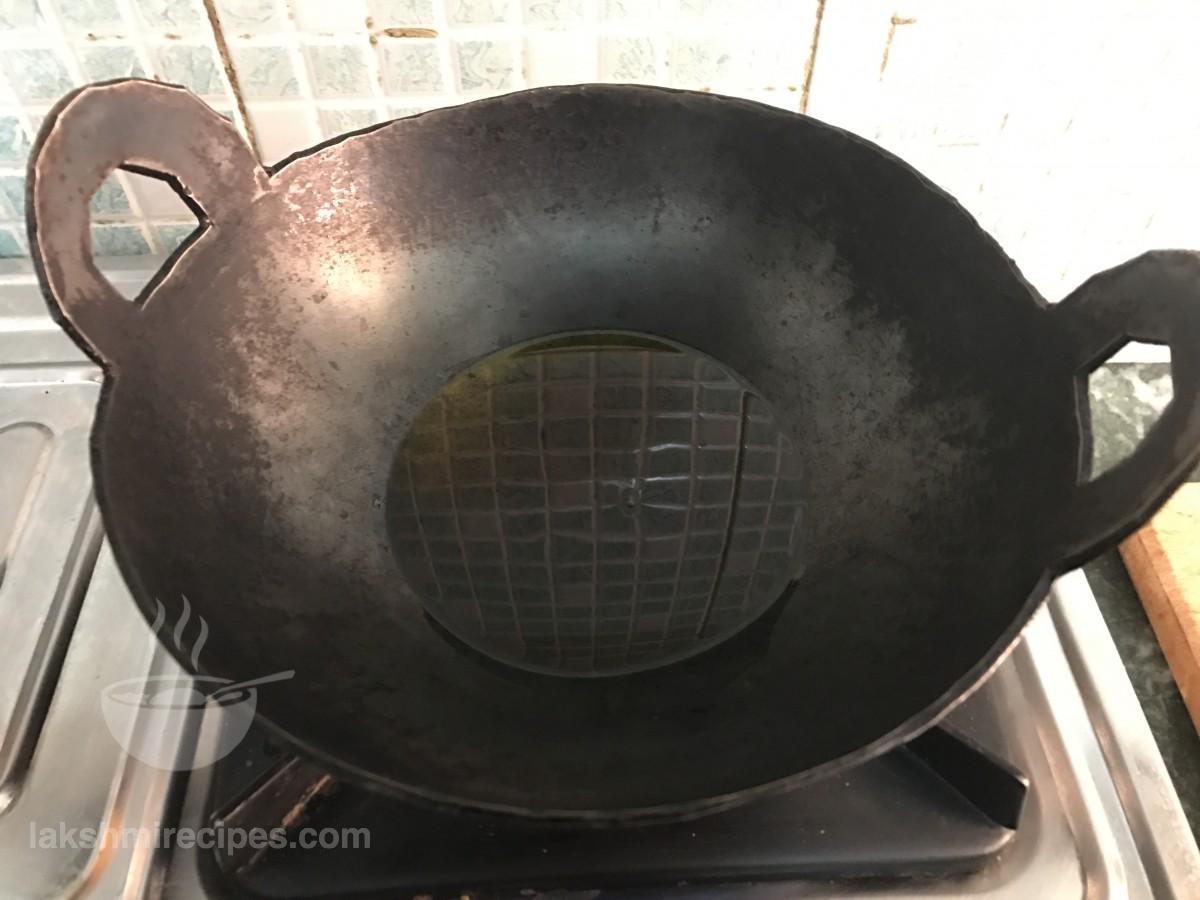 - Now heat some mustard oil in a kadhai and lower the flame to medium level when the oil is completely hot.