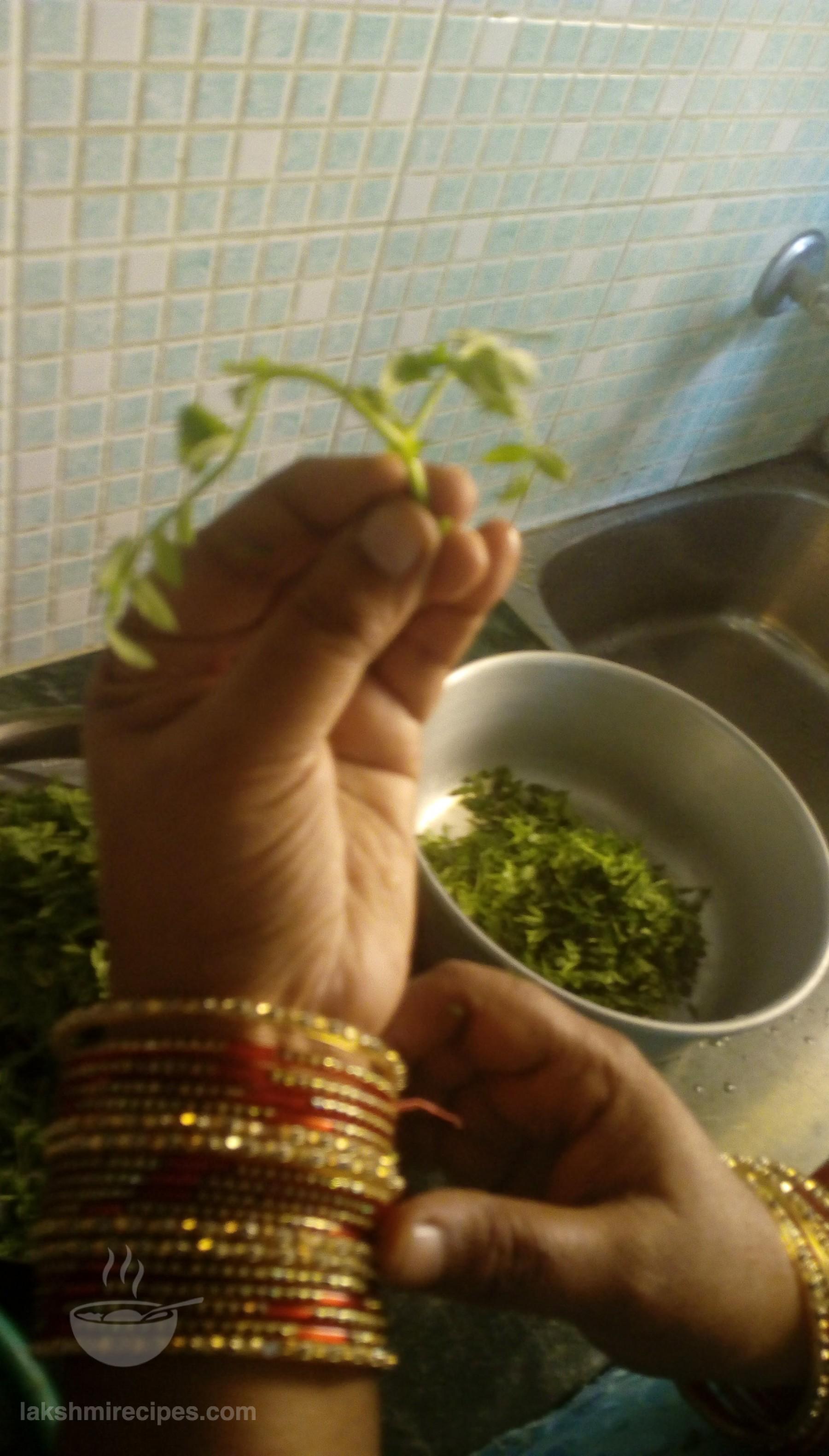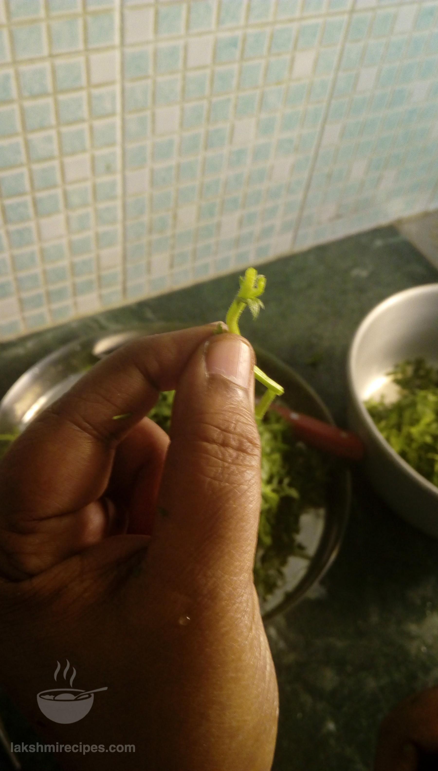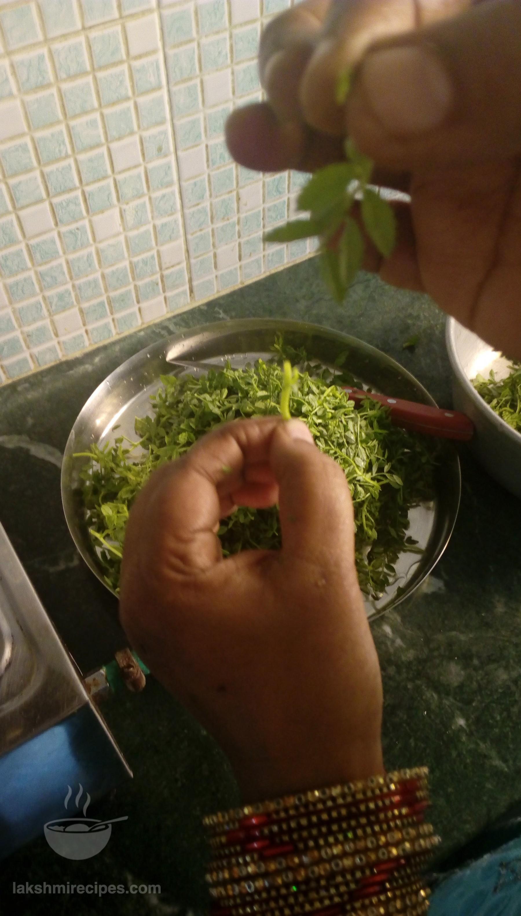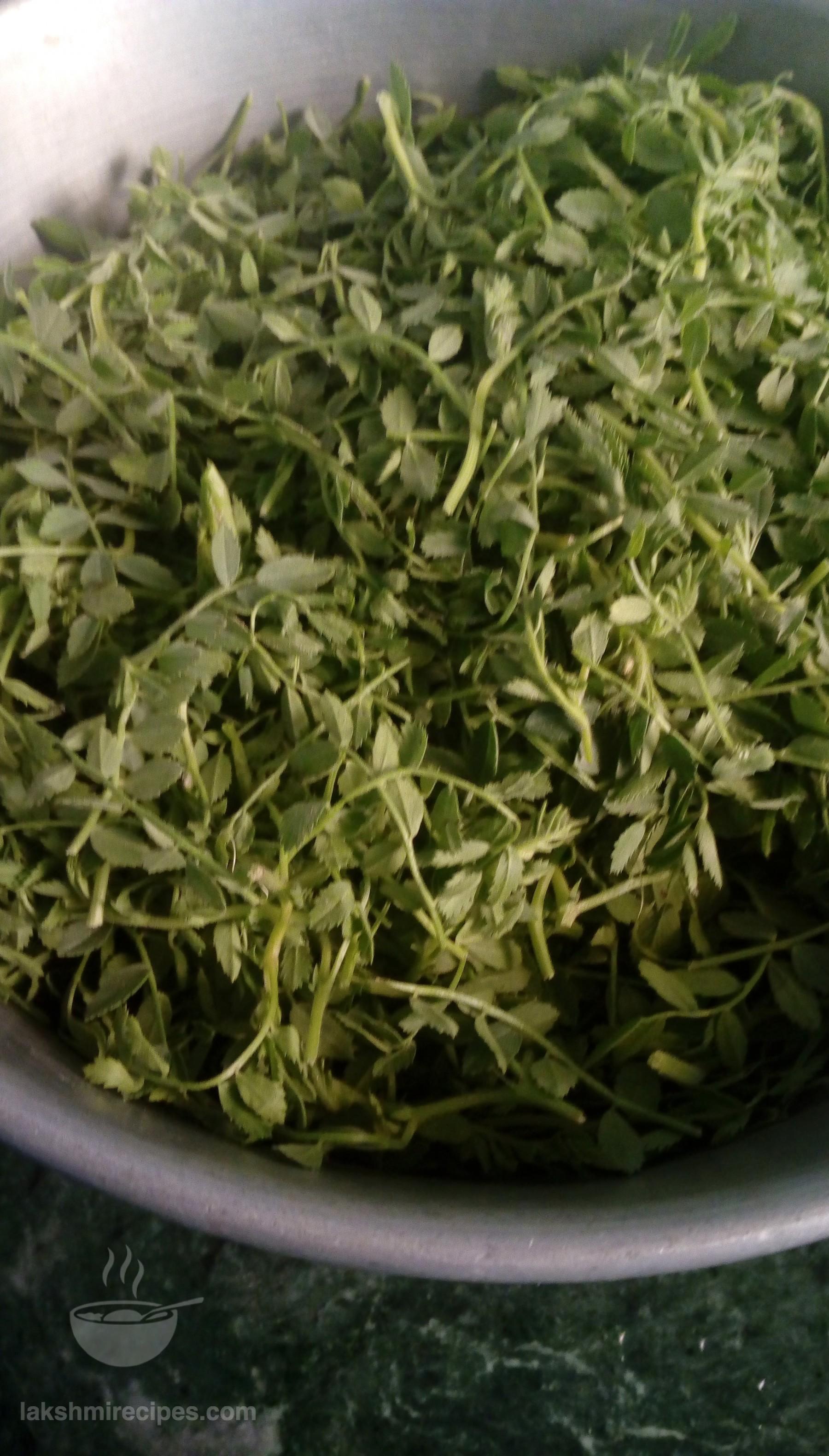 - Take a soft and fresh bunch of chana ka saag. Seperate the leaves from the bunch (as shown in the image below) for saag preparation.