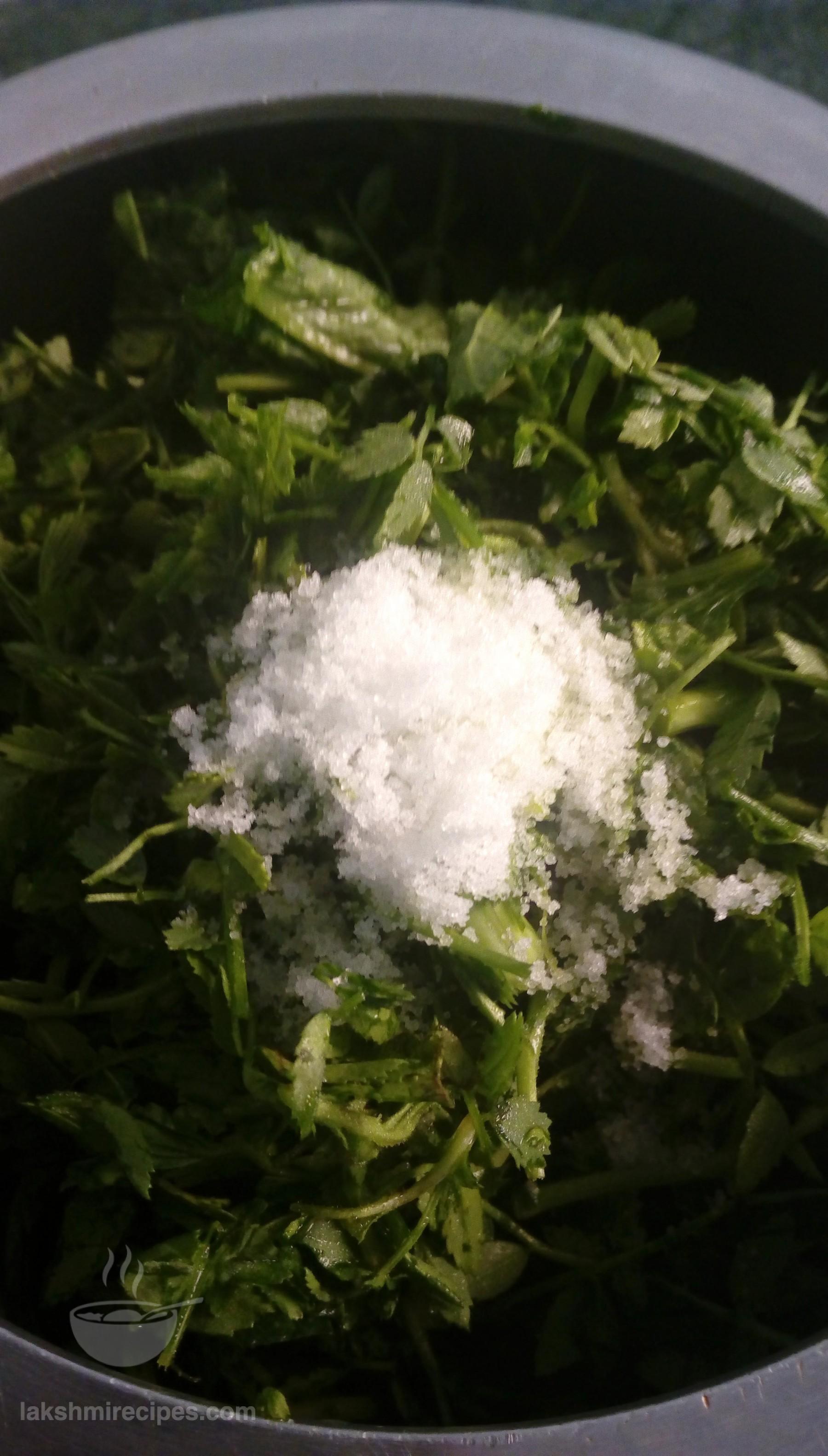 - In a cooker take the chopped saag leaves and add salt as per taste to it. Do not add water and close the lid to steam and cook the saag. Cook the saag for 1 whistle and then lower the flame to cook it for further 12 minutes.