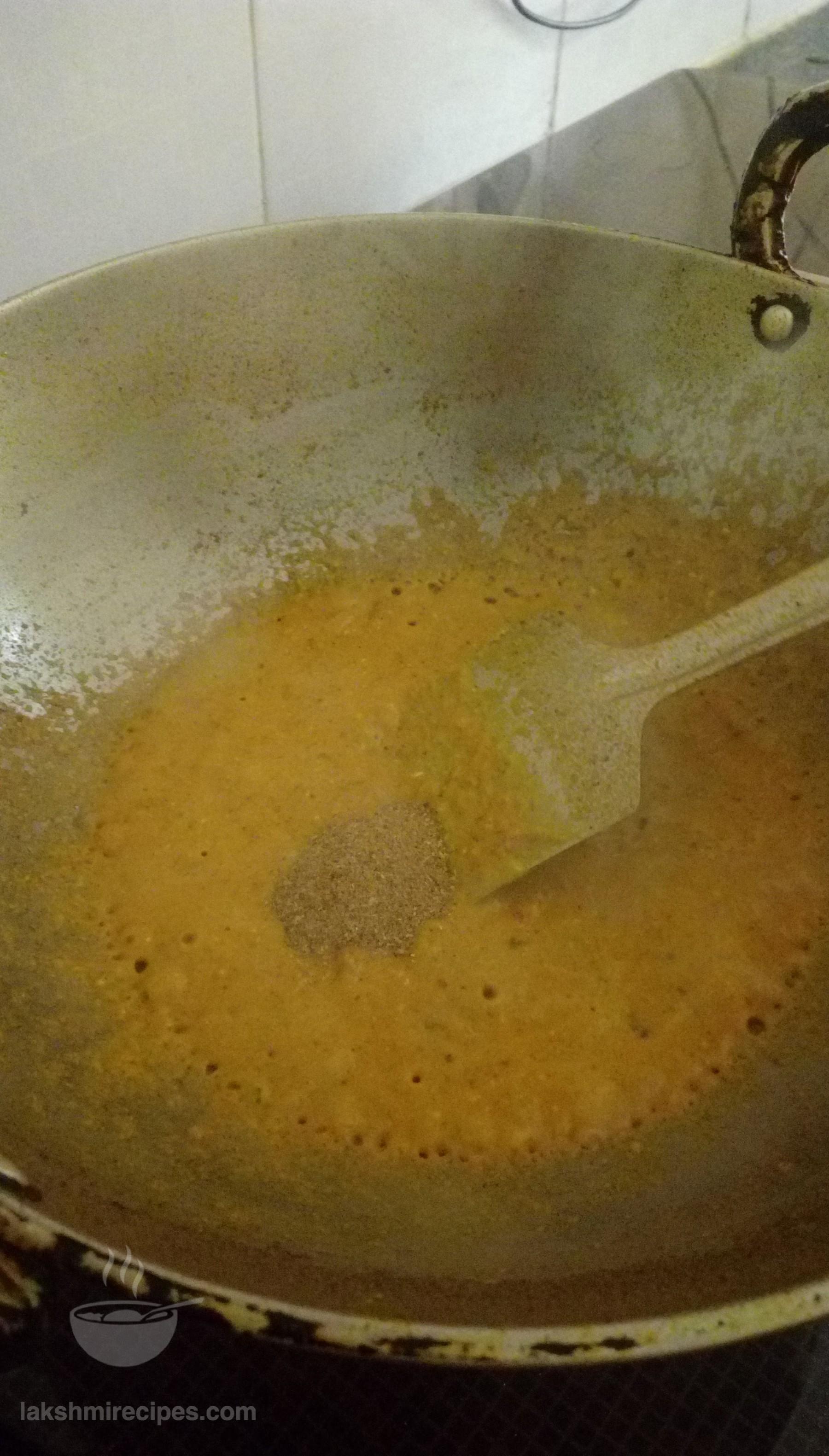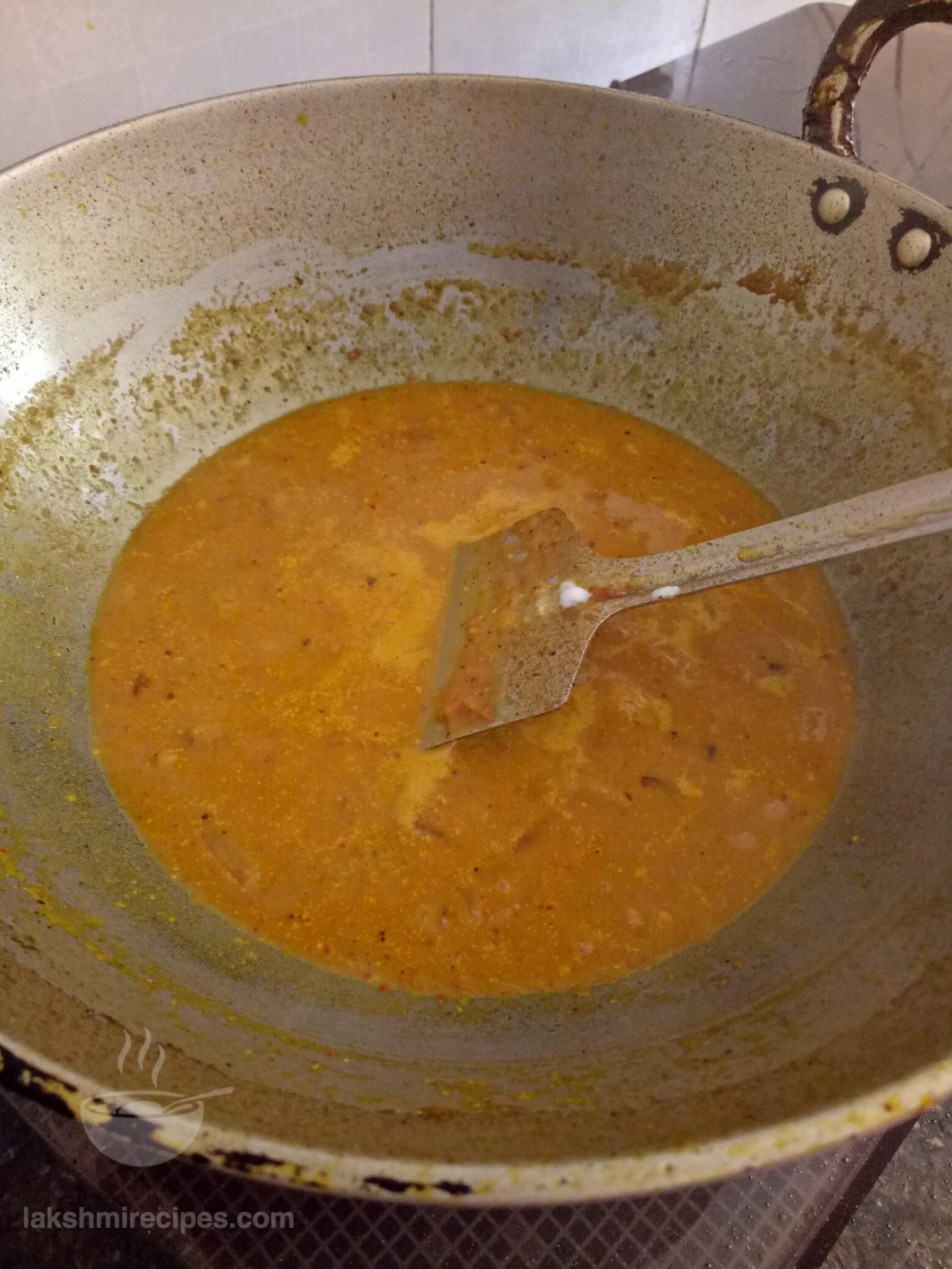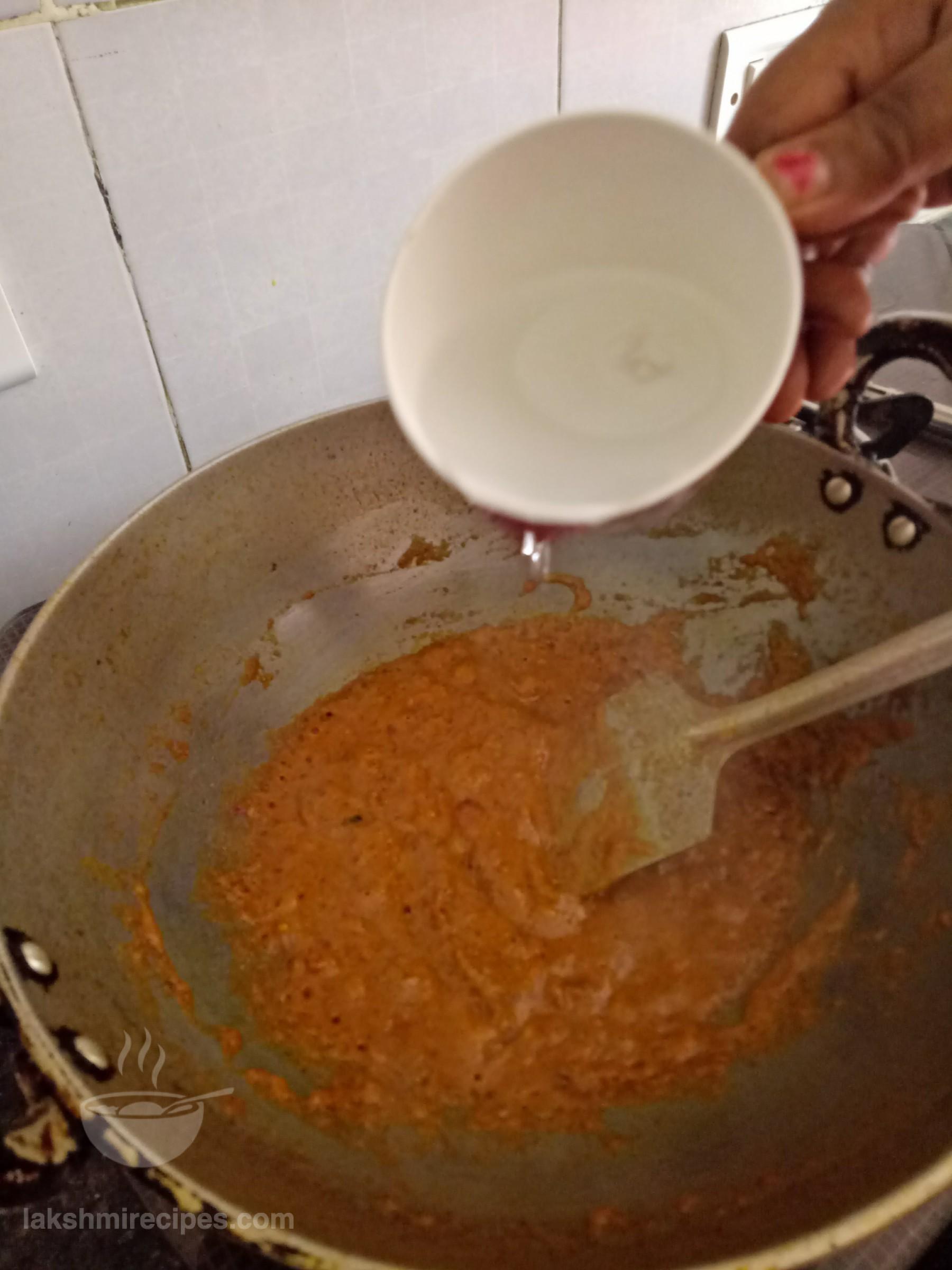 - Now add 1 big cup water to the gravy and allow the gravy to come to boil. Once the gravy starts boiling lower the flame and allow the gravy to cook for 3-4 minutes.
