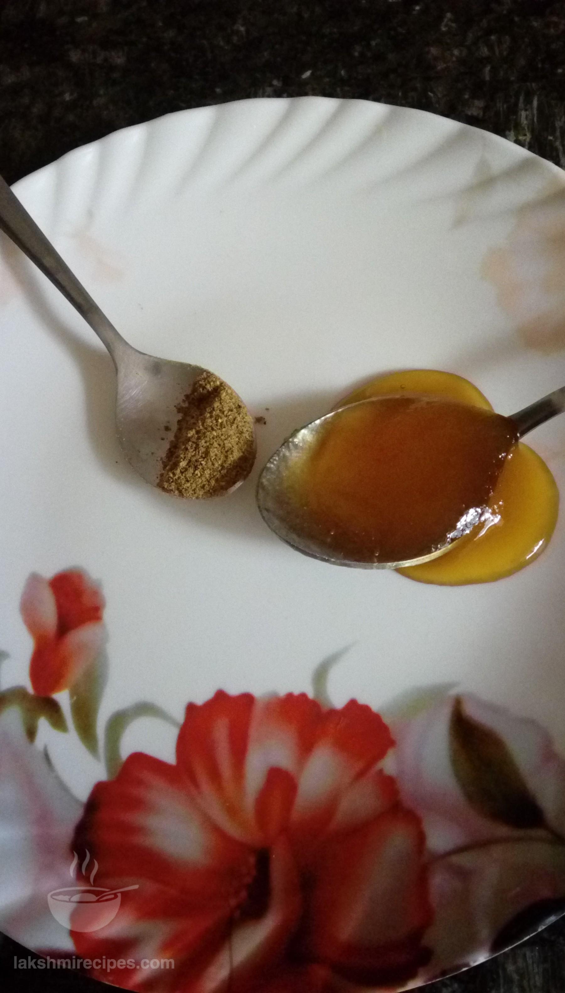 - Honey (shehad) - 1 tea spoon Or Sugar (cheeni) - 1/2 tea spoon