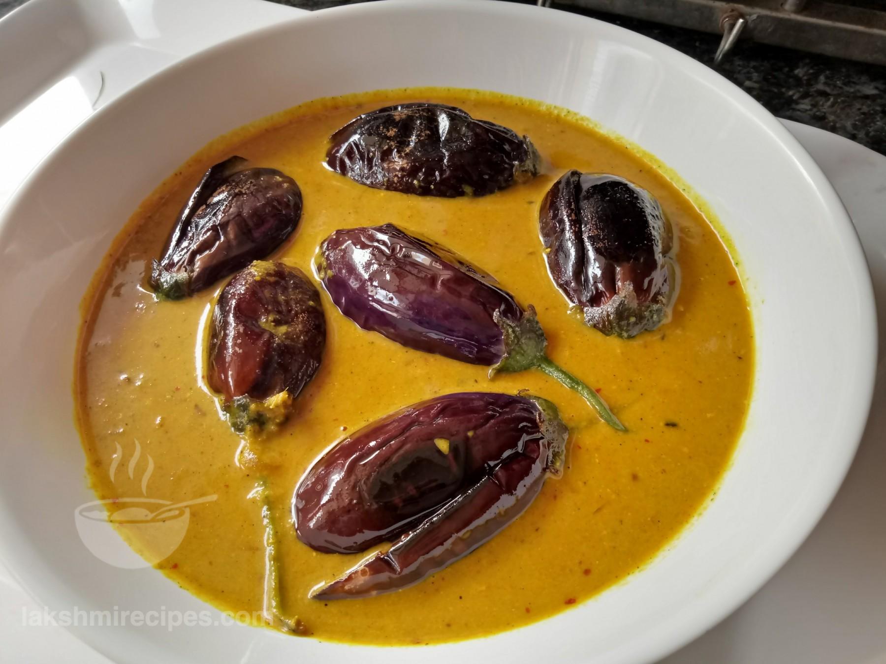 - Transfer the gravy to beautiful serving dish. Then add the fried brinjals (baingan) to it. The baingan curry is ready to be served.