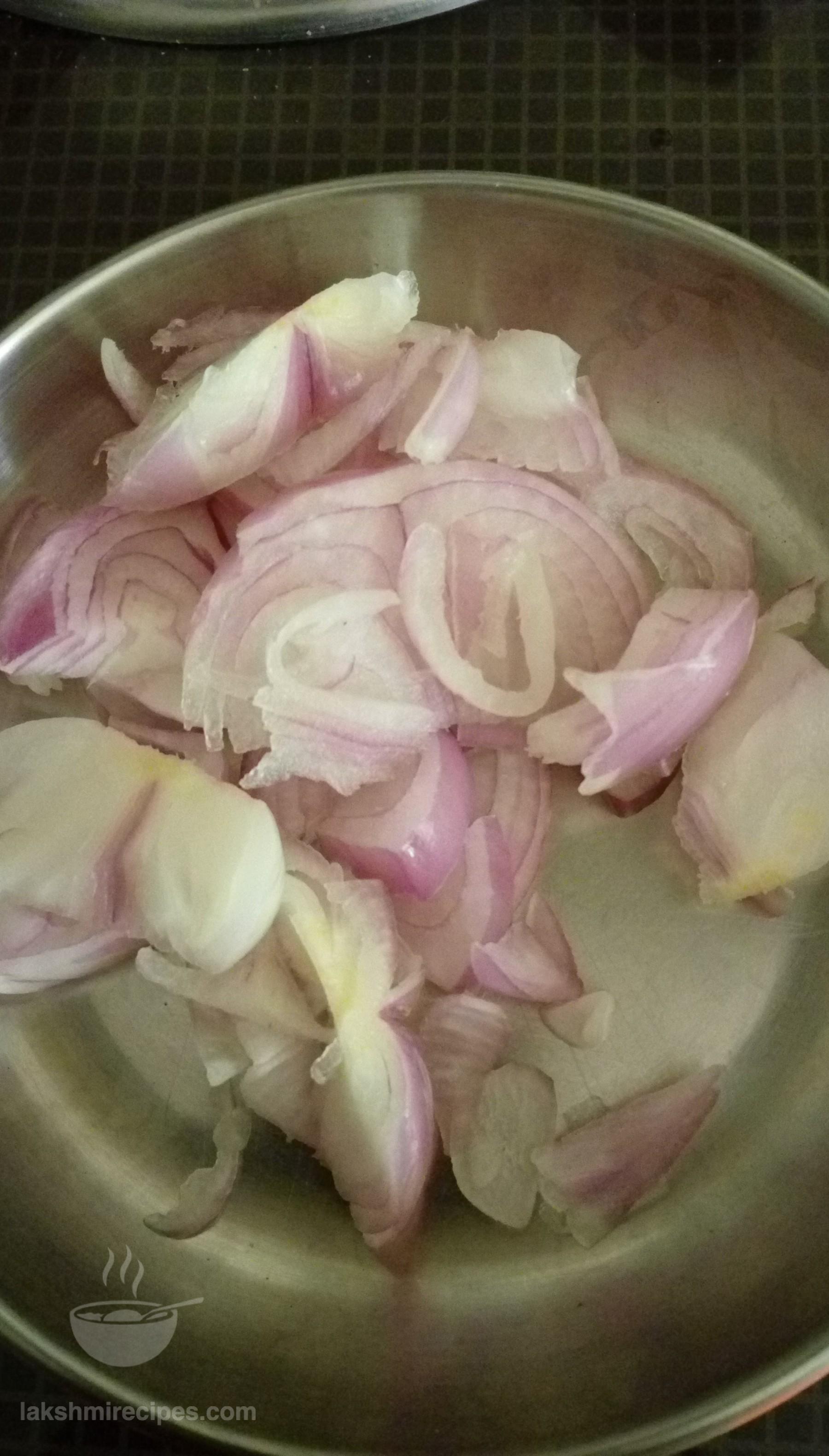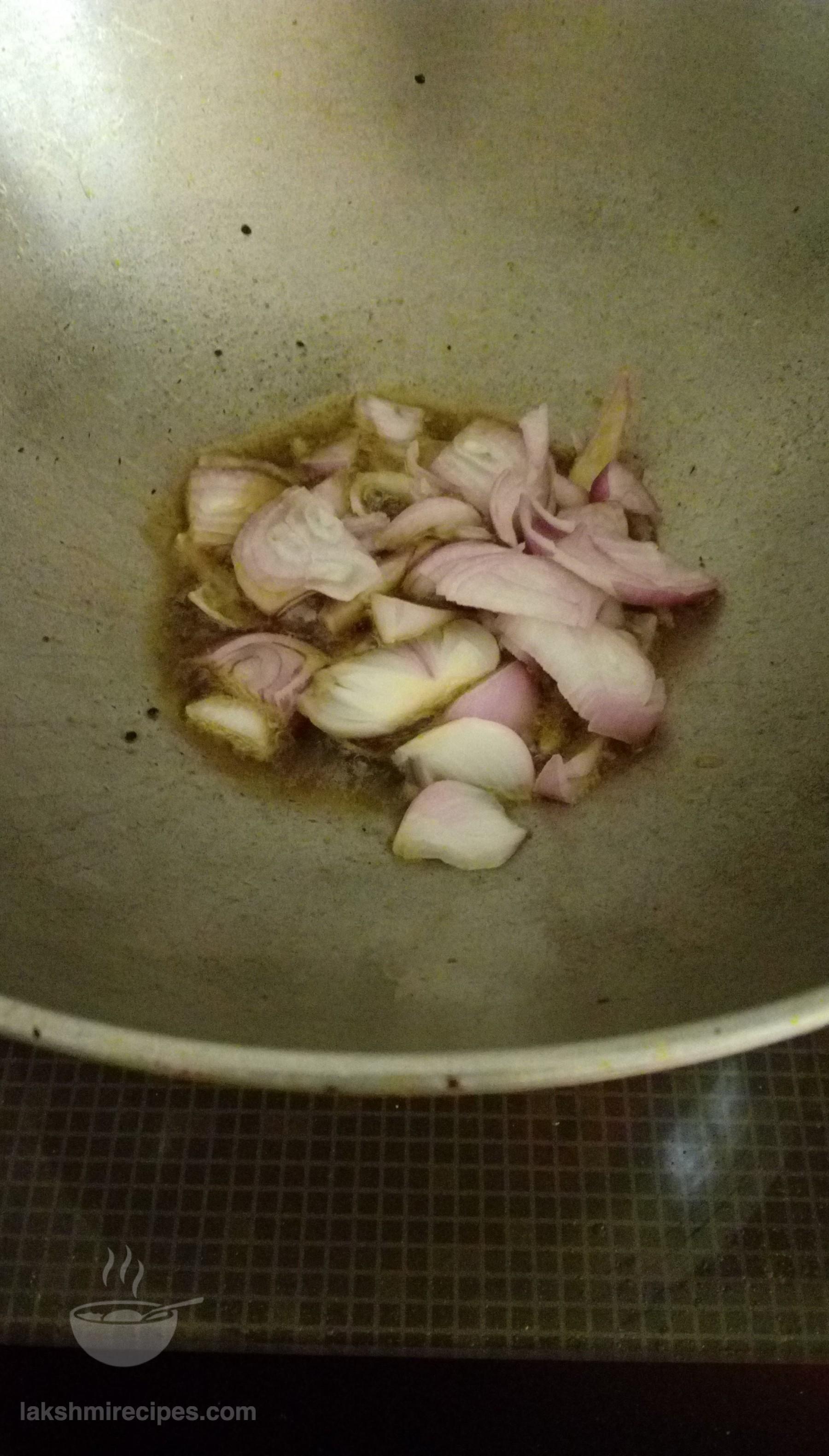 - Now heat 1 table spoon oil in another kadhai and add the chopped onion (pyaz) to it. Saute them till they turn red in color.