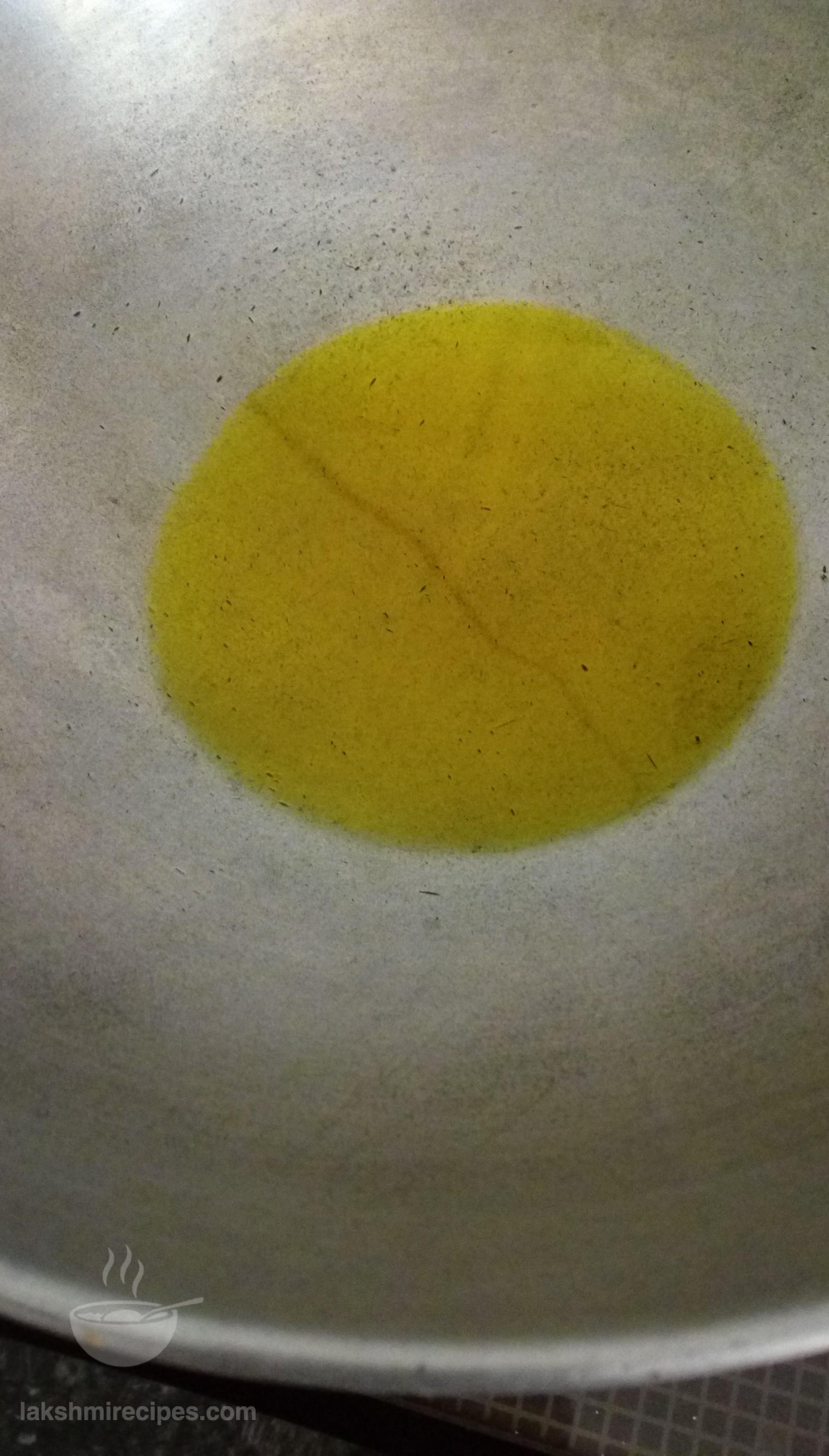 - Heat some mustard oil (sarson ka tel) in a kadhai over high flame and lower the flame when the oil is completely heated.