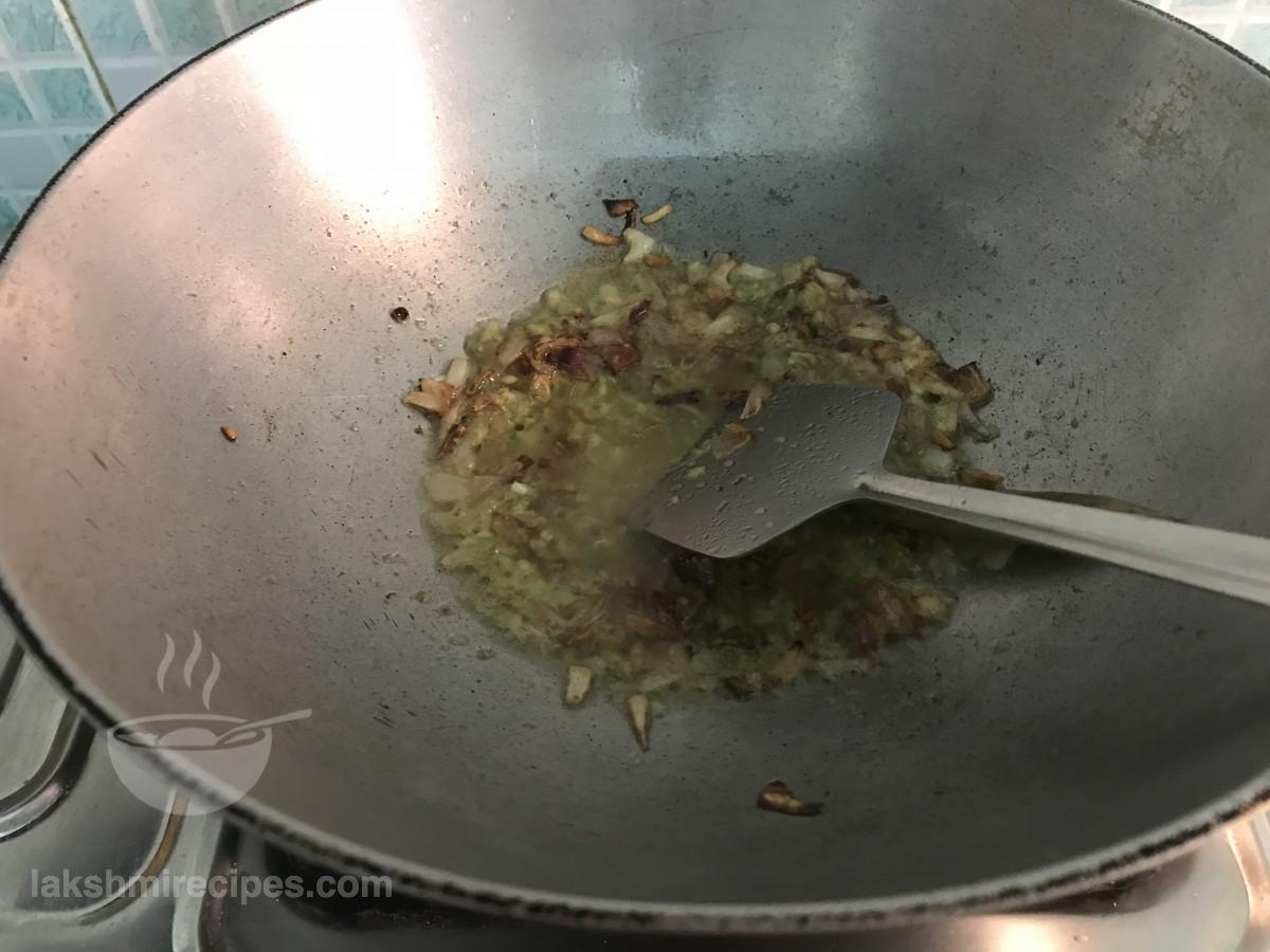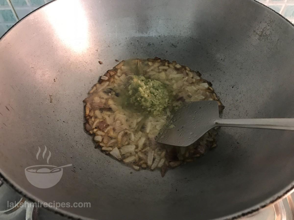 - Then add paste of ginger-garlic and green chilli and saute it with the other ingredients for 1 minute.