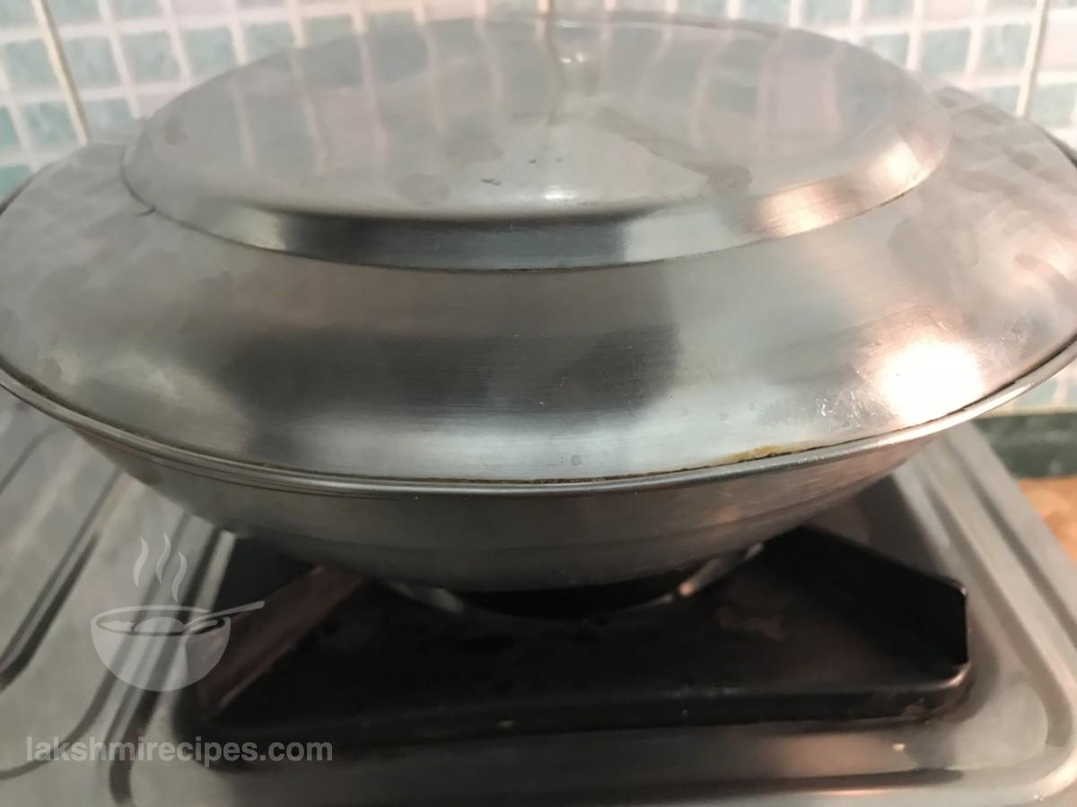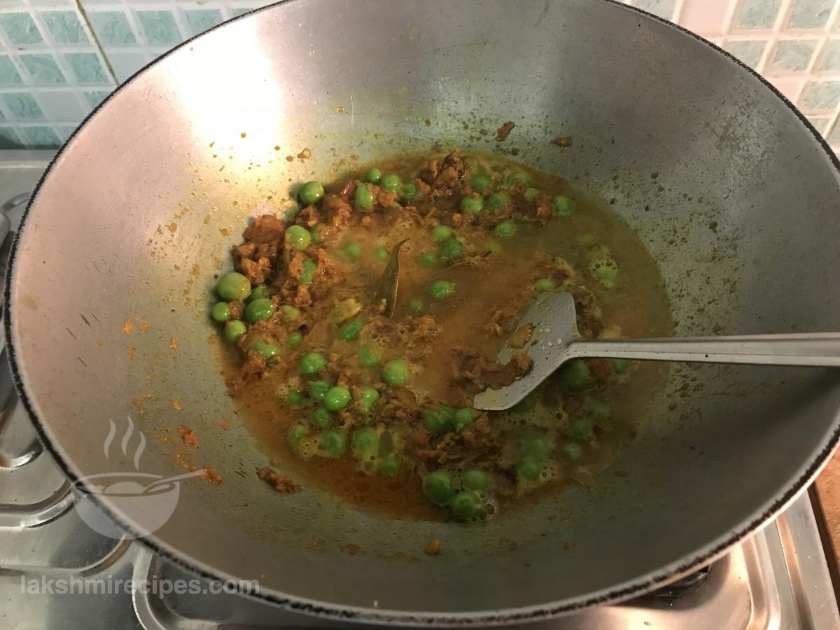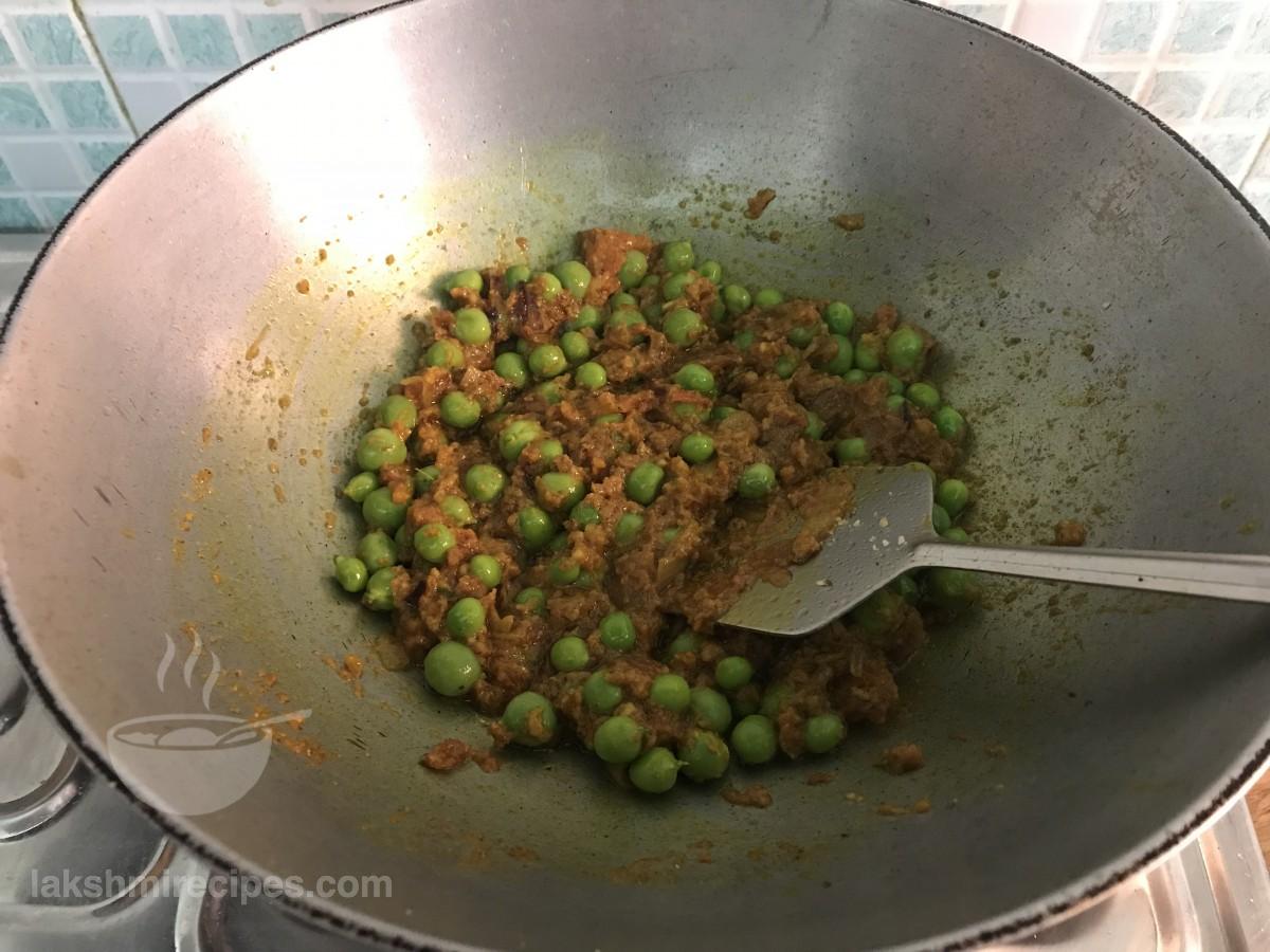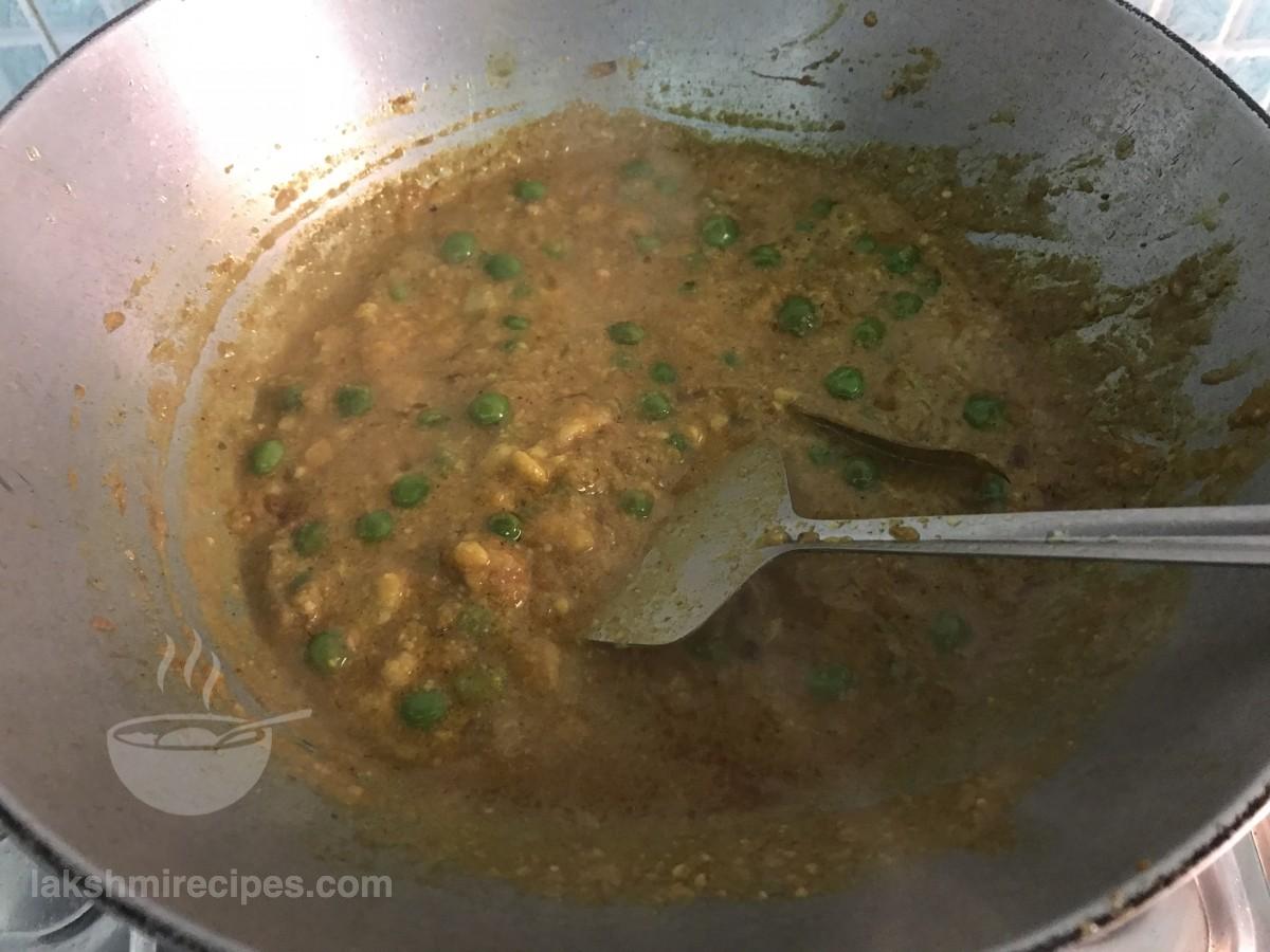 - Now remove the lid from the kadhai and take a green peas. Mash it with your finger to check if it is nicely cooked.