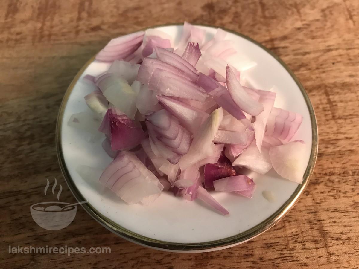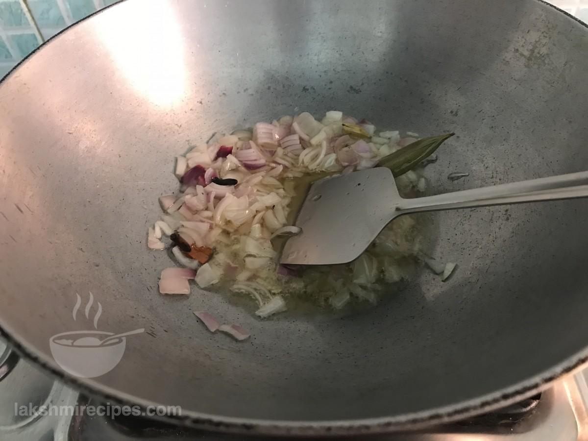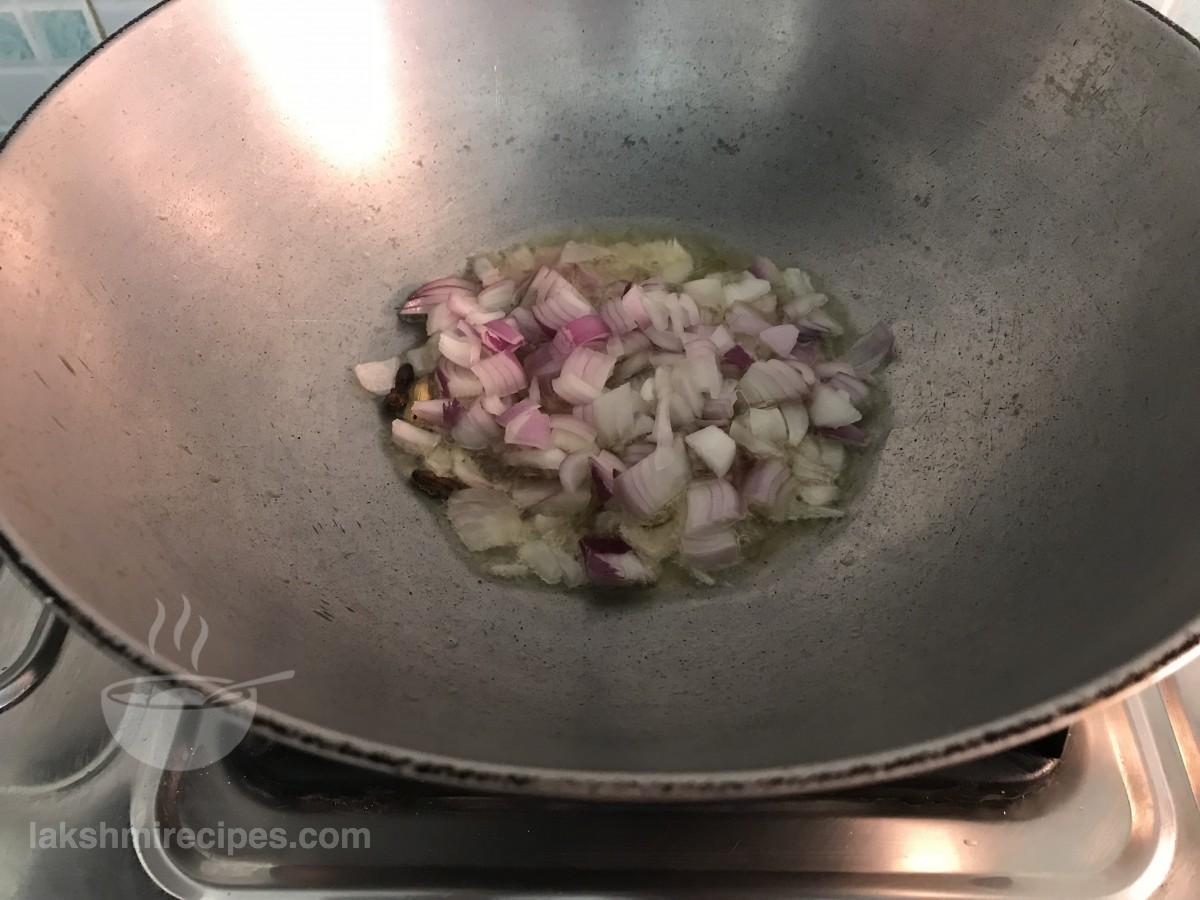 - Now add chopped onion and saute till they turn light red and translucent in color.