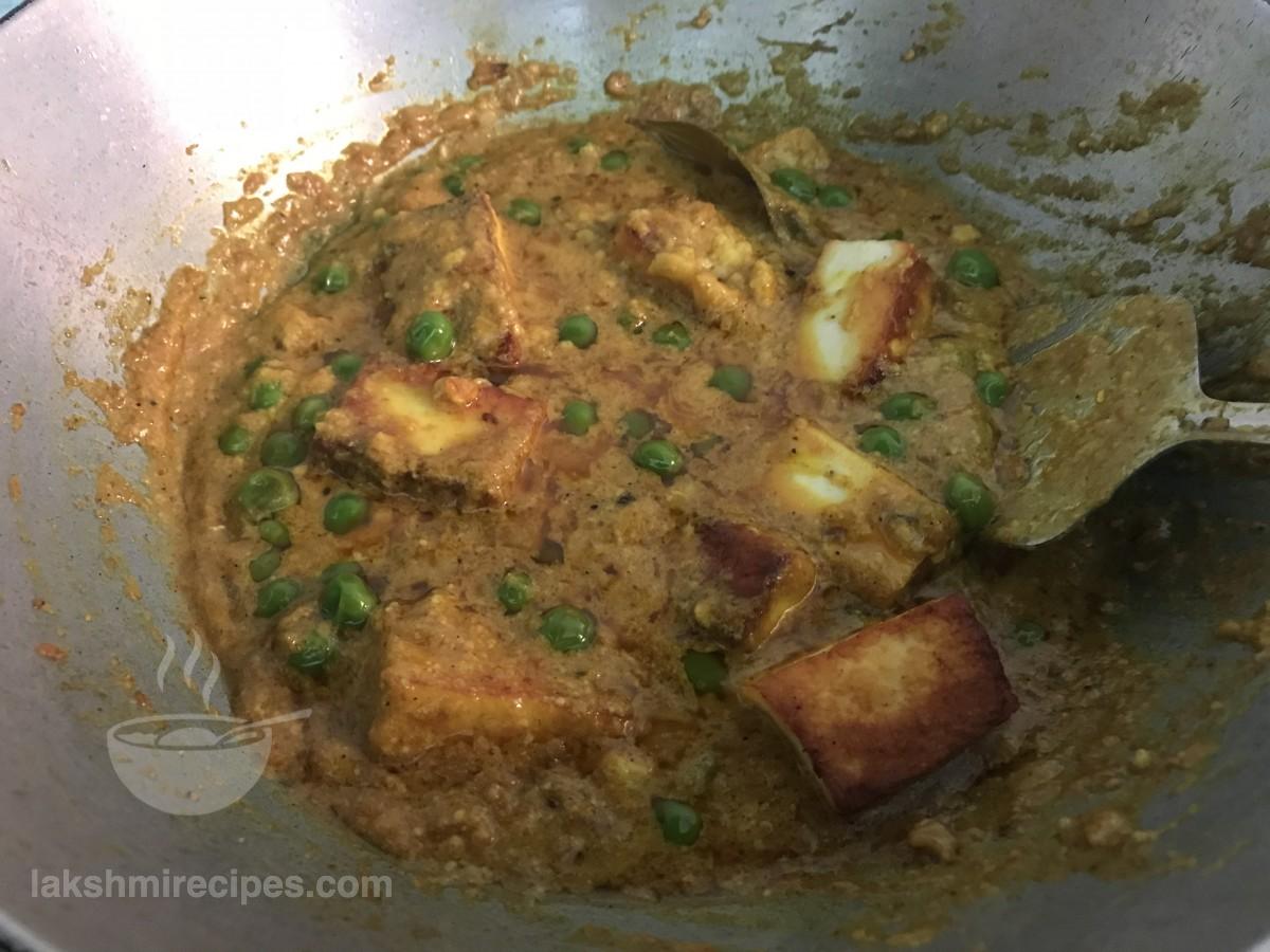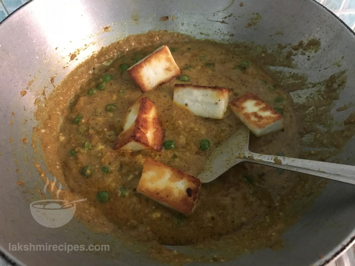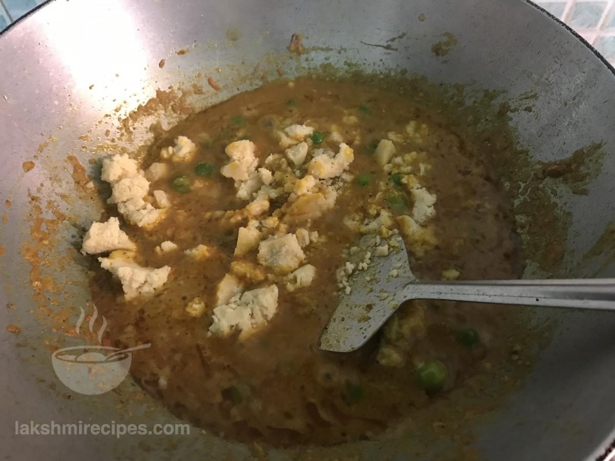 - Then add the sauteed paneer pieces and cook them in the gravy for 1-2 minutes. Then turn off the flame. Khoya Matar Paneer curry is ready to be served hot with poori, paratha, roti or phulka.