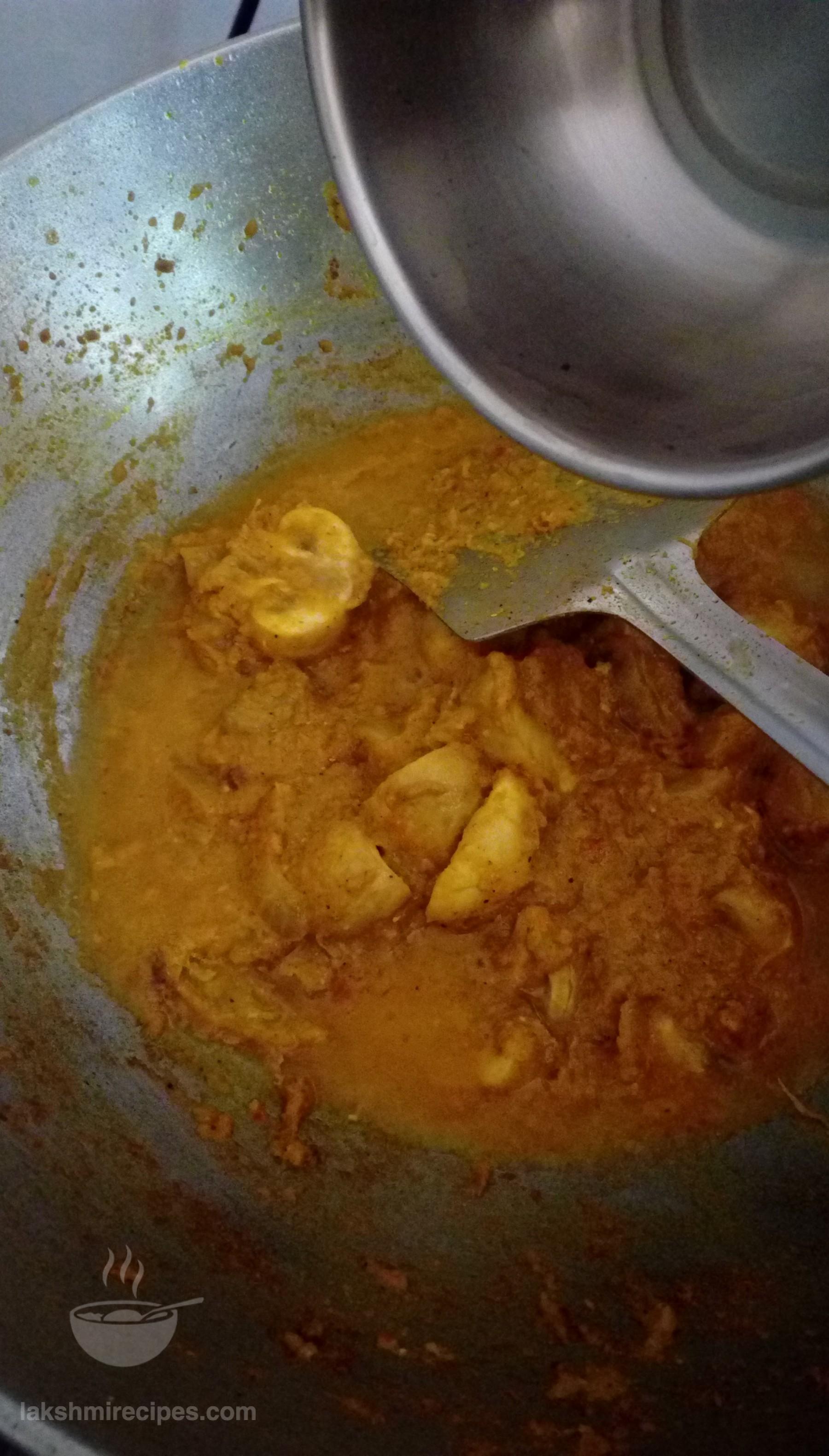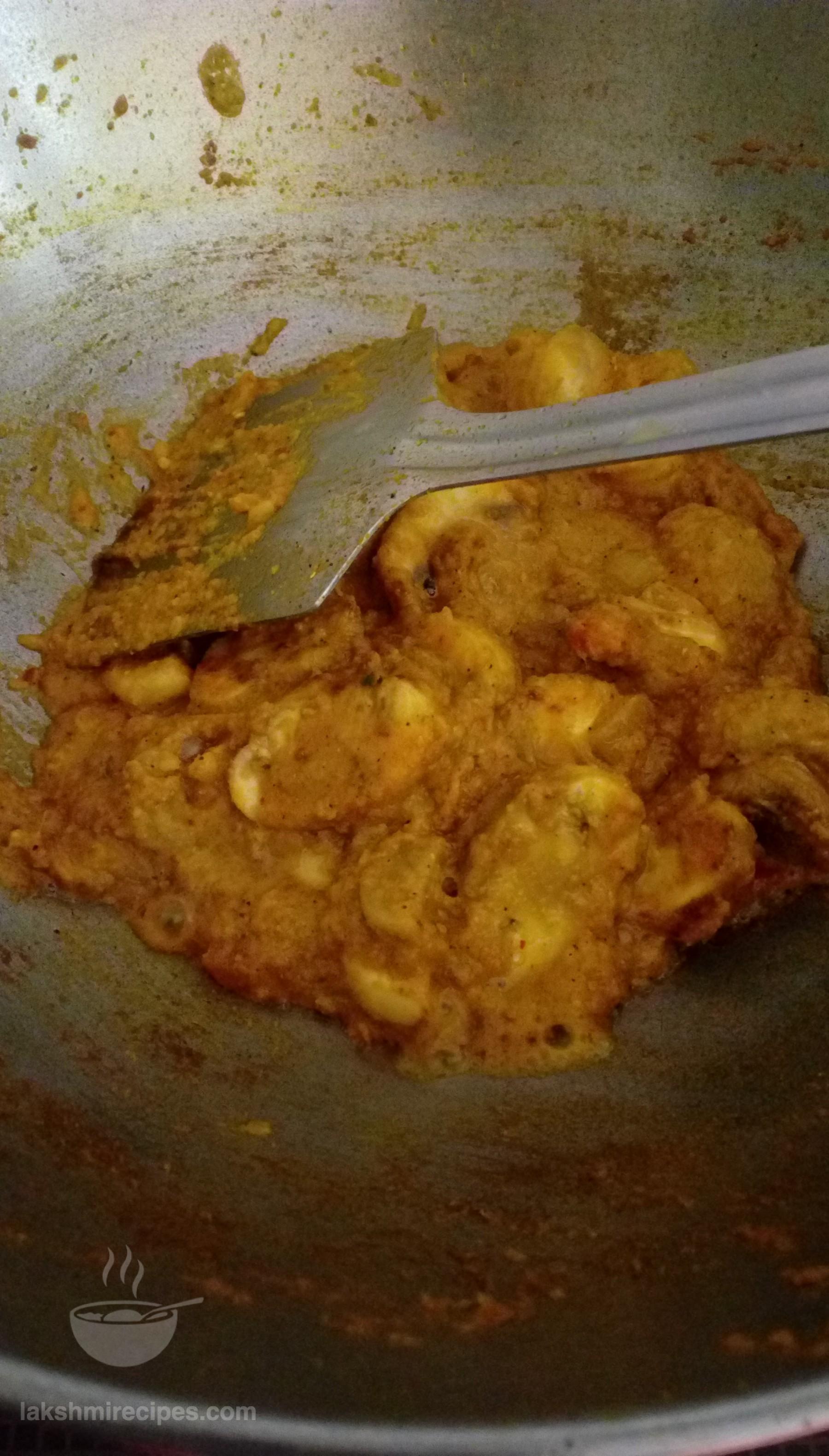 - After 2-3 minutes remove the lid and add 2-3 table spoon water and mix it with mushrooms and the masala.