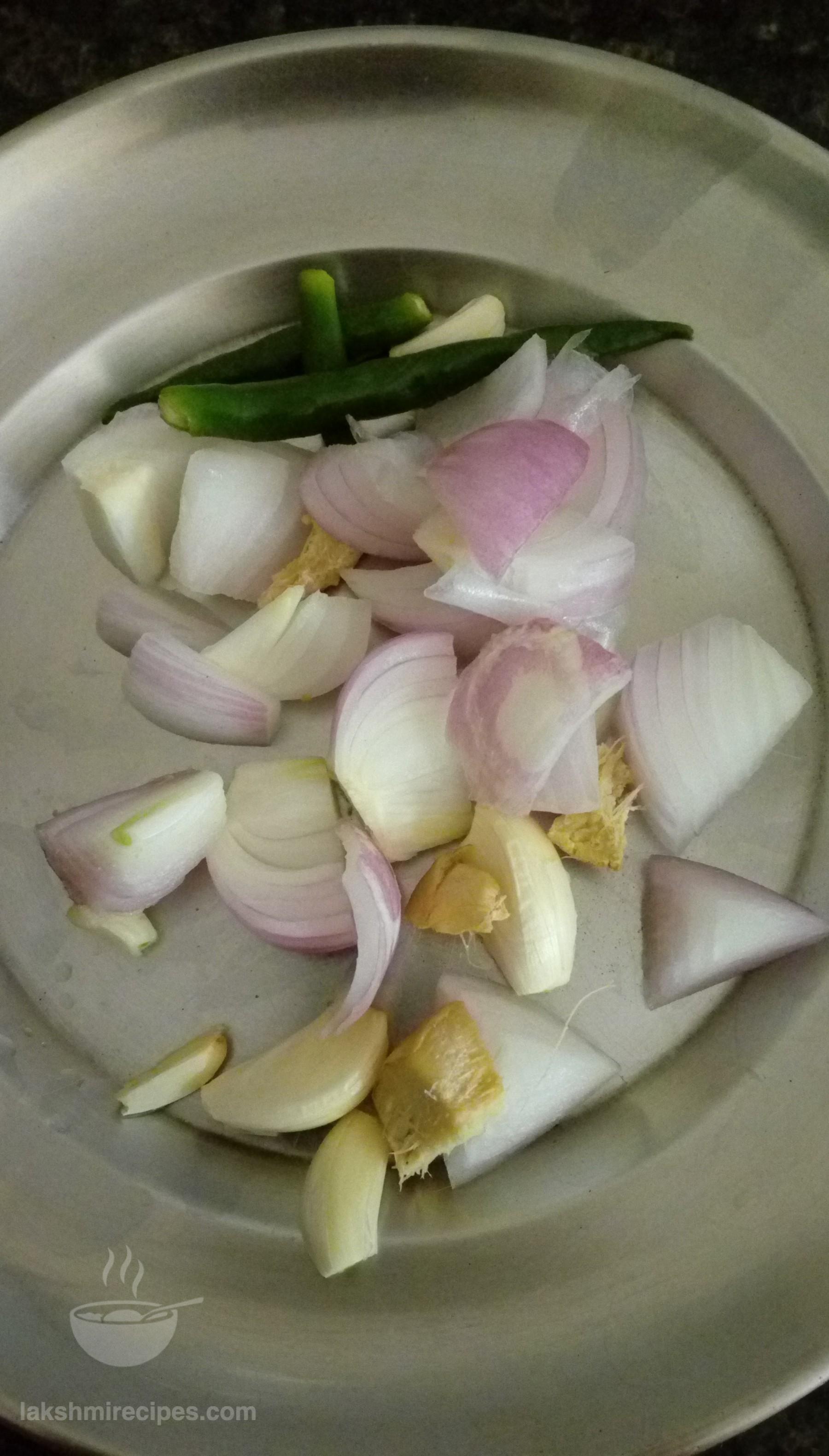 - Onion (pyaz) - 1 big size (1/2 roughly chopped + 1/2 finely chopped)
