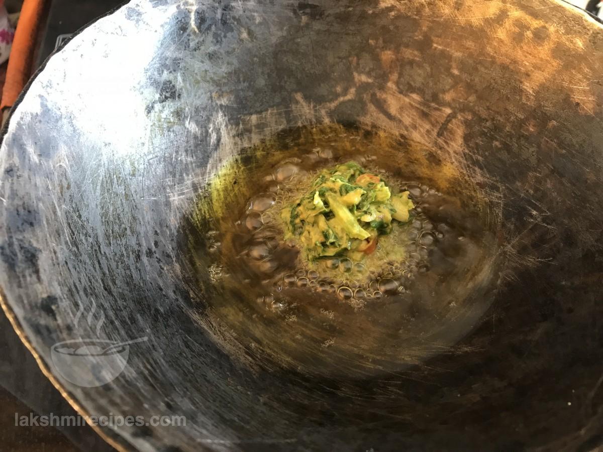 - अब कढ़ाई में अदरक-लहसुन और हरी मिर्च का पेस्ट डालें और इसे भी भूनें।