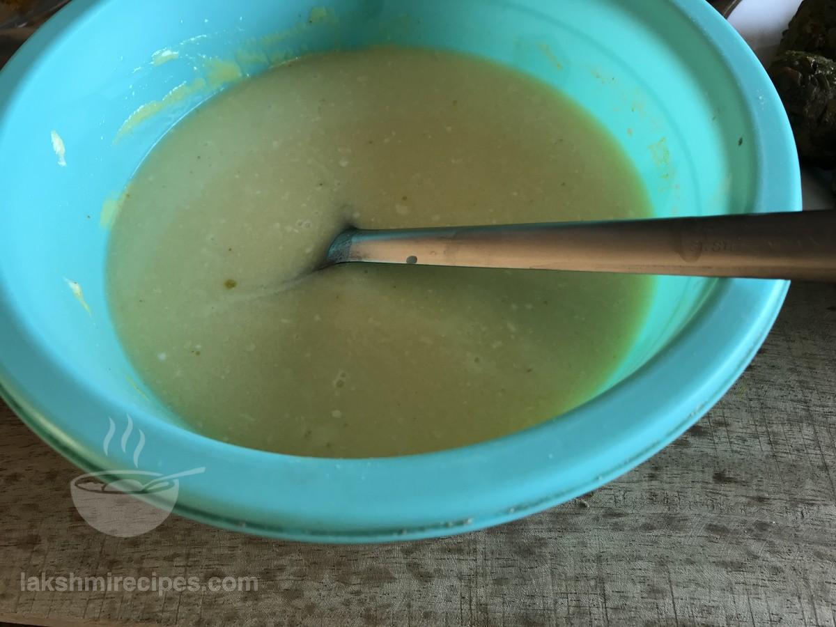 - फिर इस बैटर में 3 छोटा कप पानी डालें और फिर से मिलाएं।