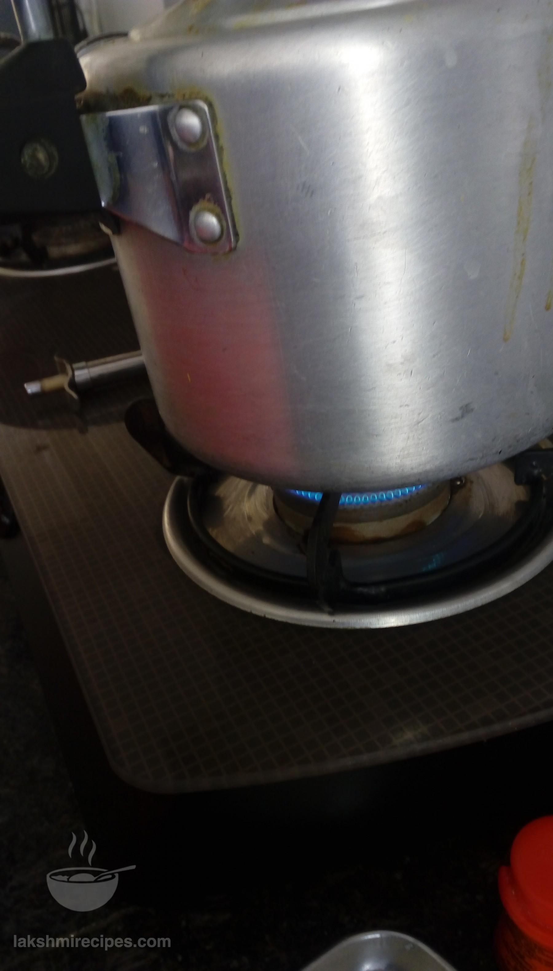 - Transfer the chopped spinach leaves (palak ke patte) to a pressure cooker. (Do not add salt or water.) Pressure cook the leaves for 1 whistle and then turn off the flame.