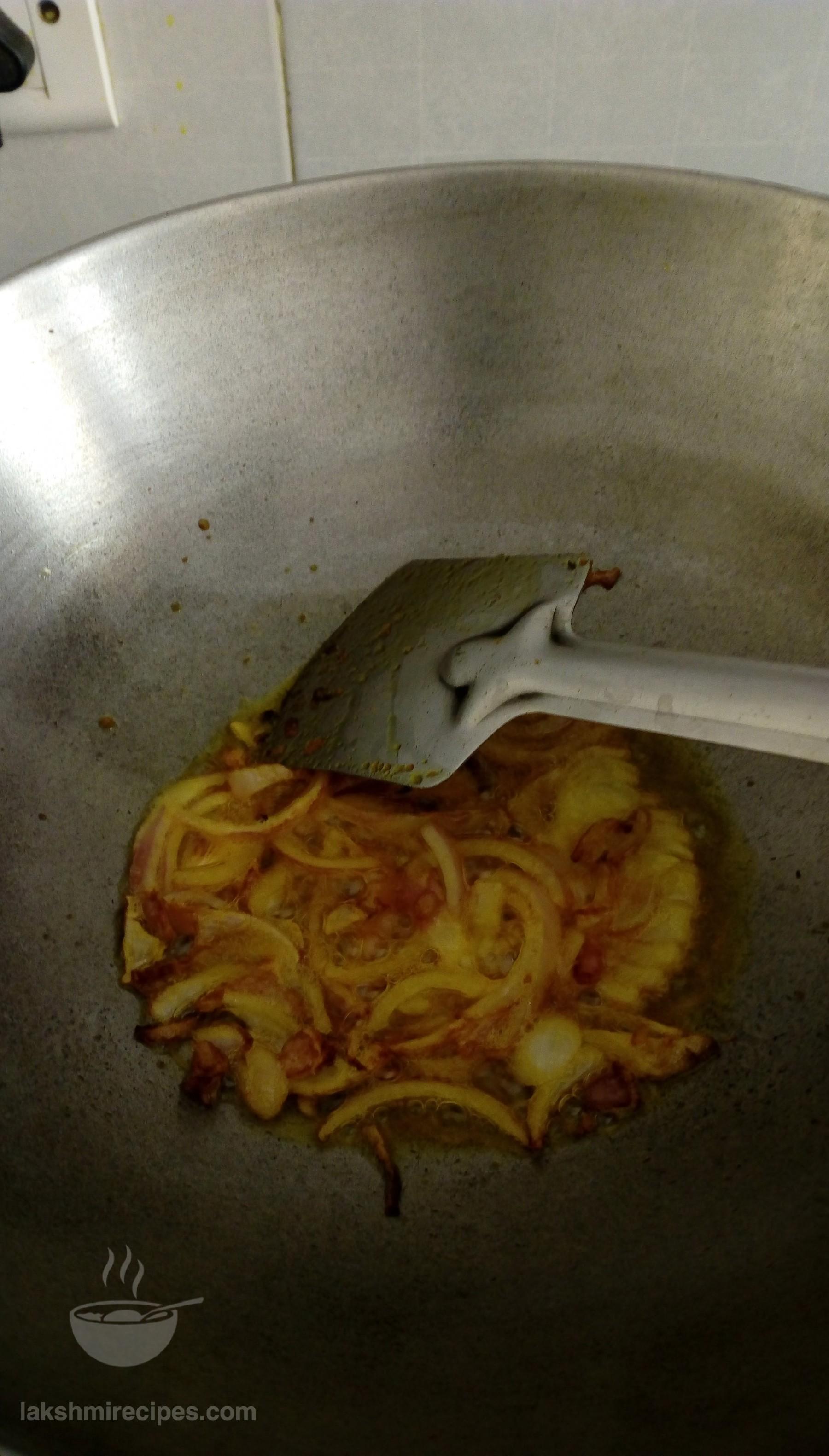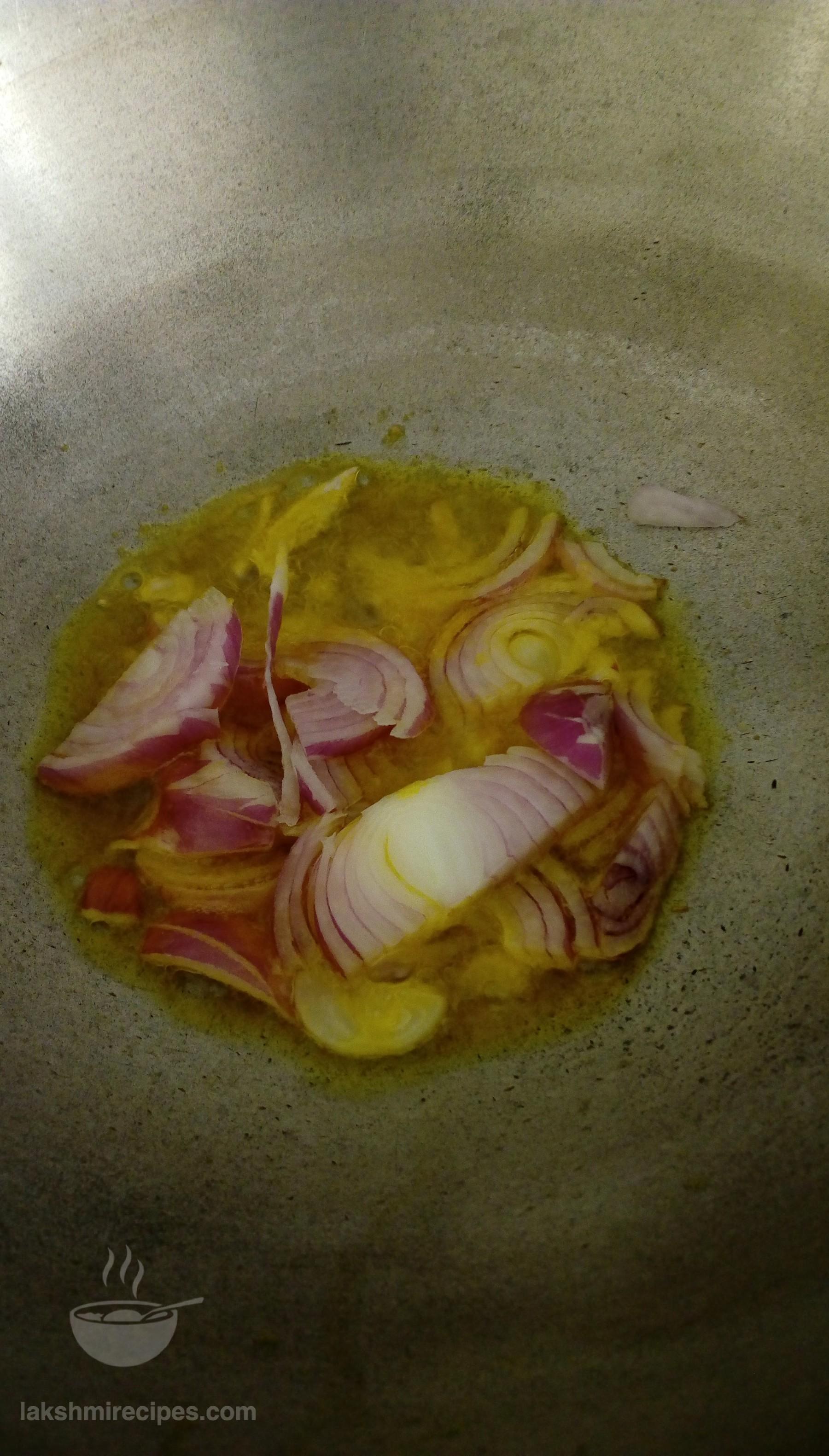 - Now heat some mustard oil (sarson ka tel) in a kadhai and add choppe donion (pyaz) to it. Saute till they golden red in color.