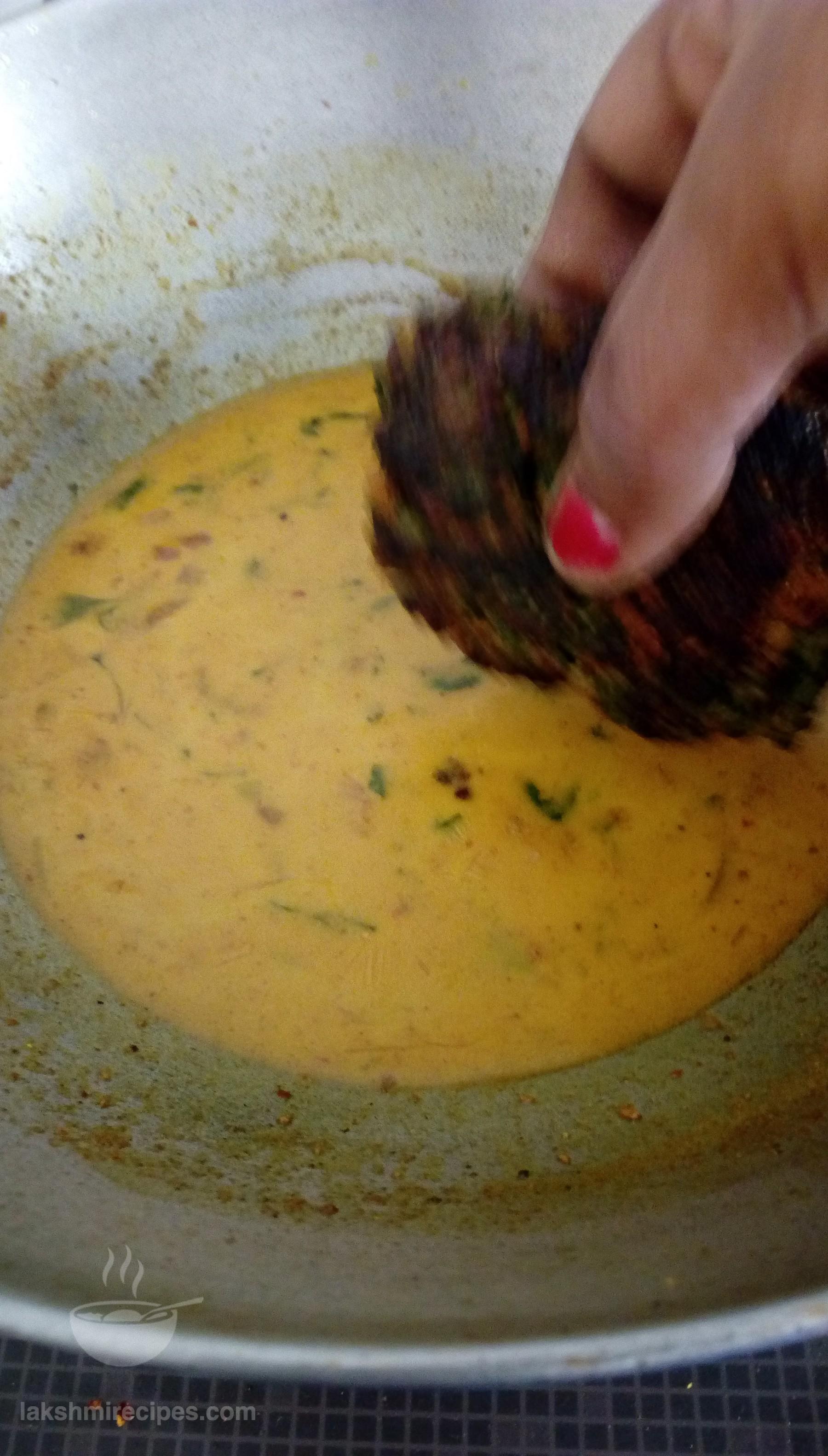 - Add fresh cream or malai to the cooking masala. Mix well and cook the ingredients together for some time.