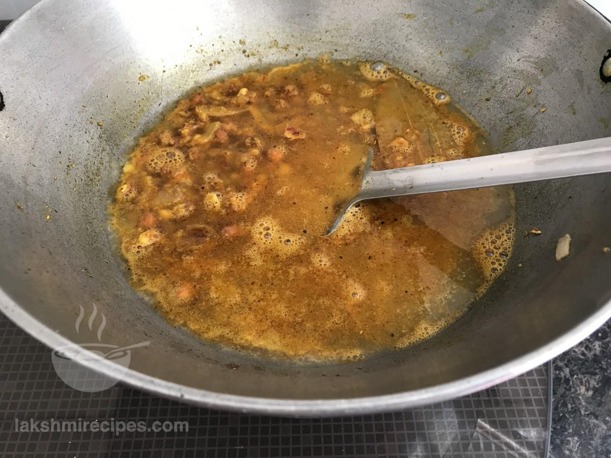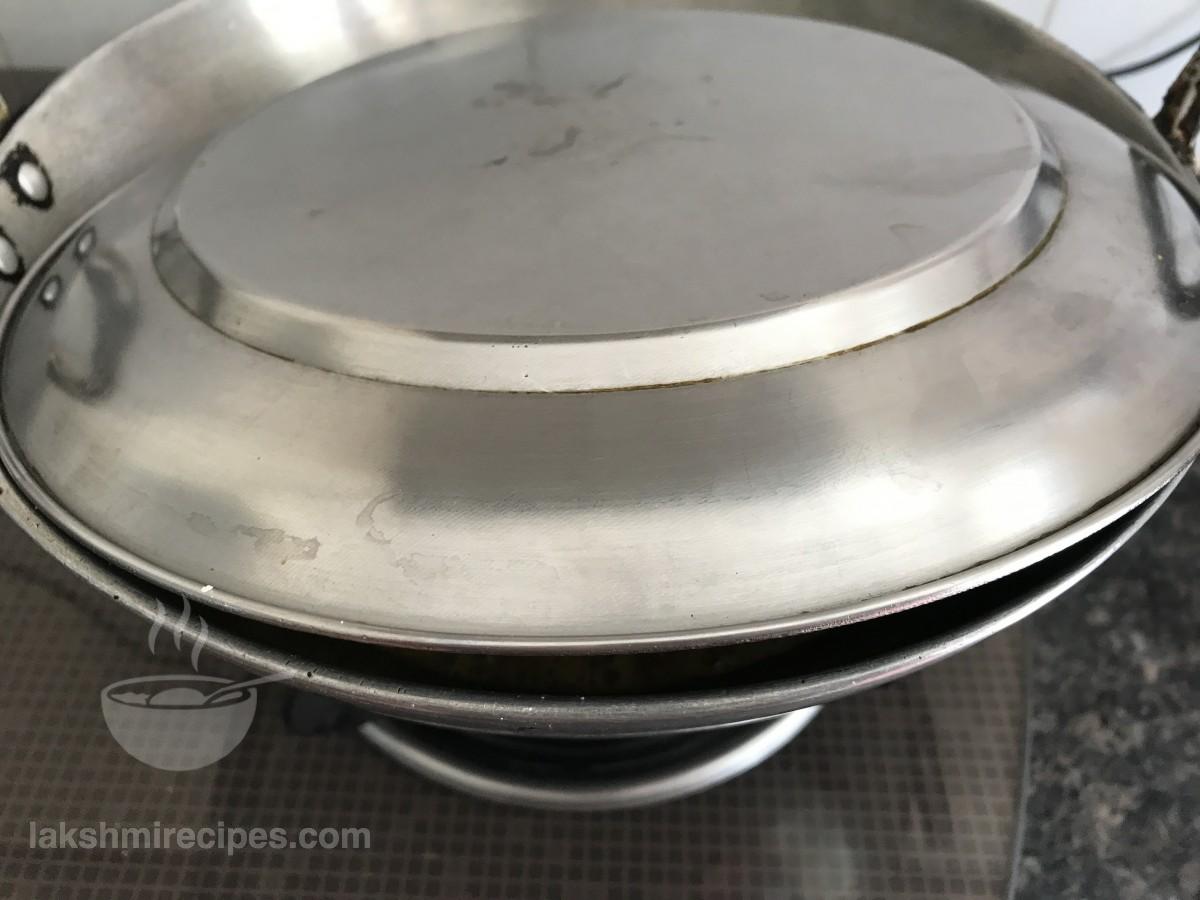 - Cover the kadhai with a lid, lower the flame and allow the curry to cook for 15-20 minutes.